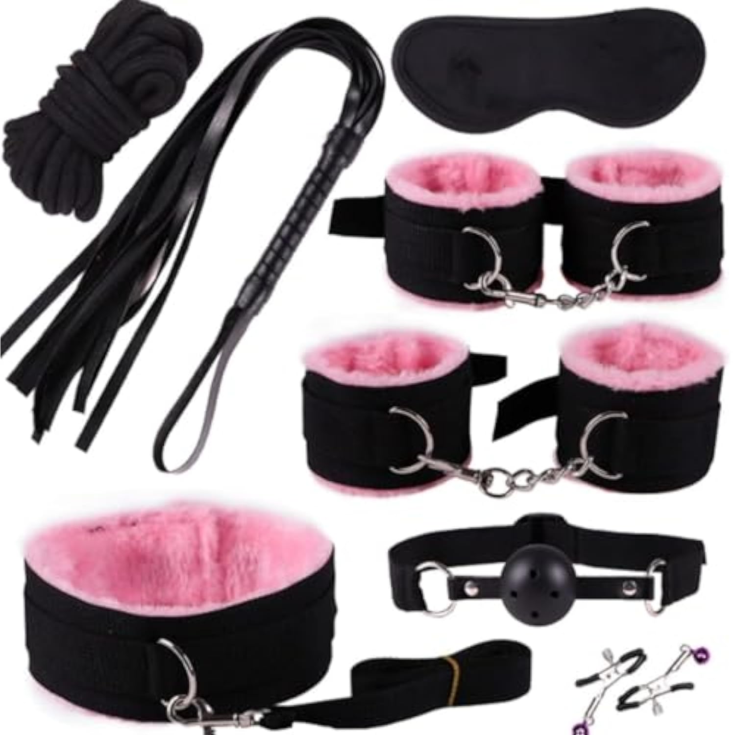 Bdsm-Bondage-Kit Restraints Kit Sex Toys For Couples,Adjustable Bondage Set Fuzzy Handcuffs Ball Gag Couple Sex Toys Bsdm Toys For Couples Juguetes Sexuales Eroticos (Pink)
