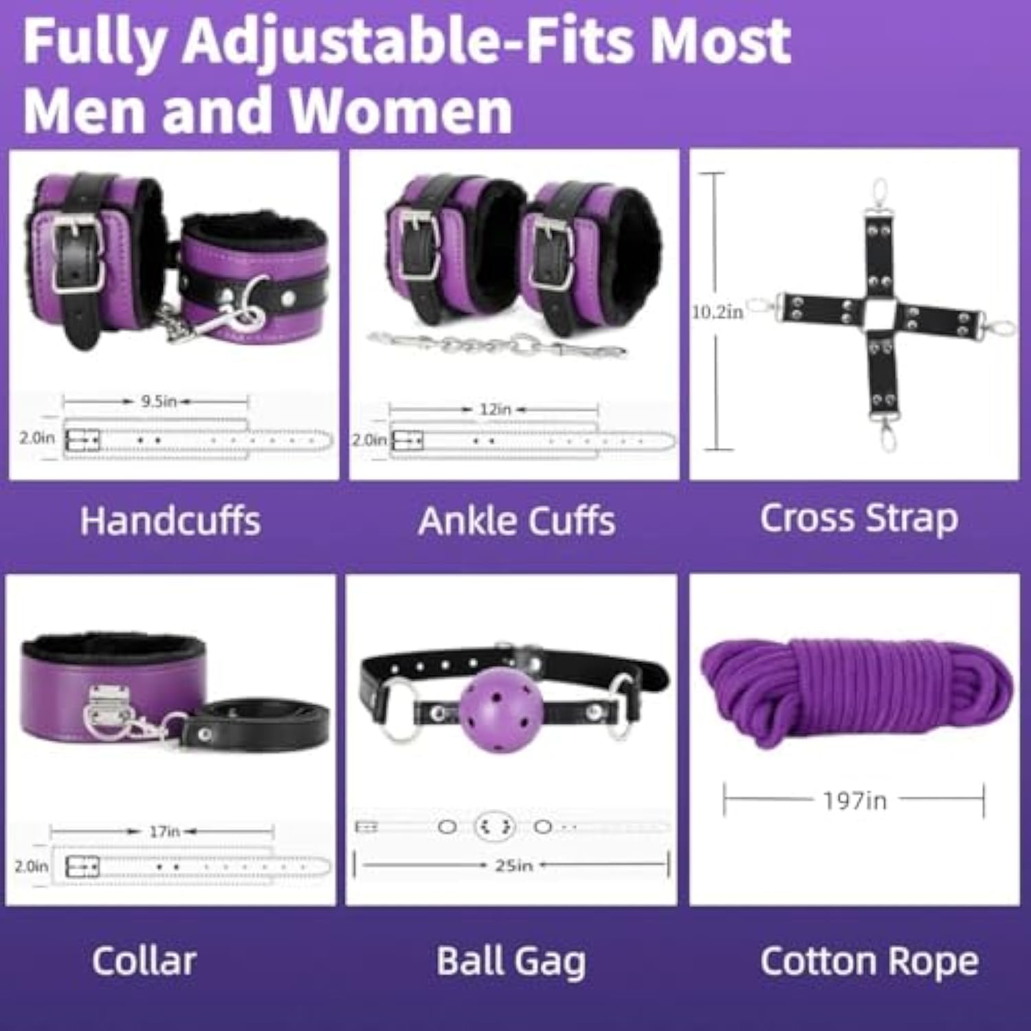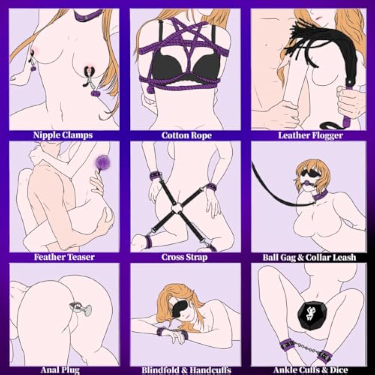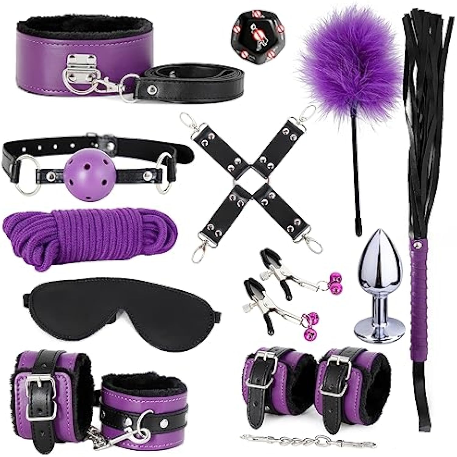Bdsm Bondage Restraint Kits 12Pcs Sets Sex Toys Handcuffs Ankle Collar Cuffs Blindfold Feather Tickler Ball Gag Anal Plug Sm Games Adjustable For Women Men