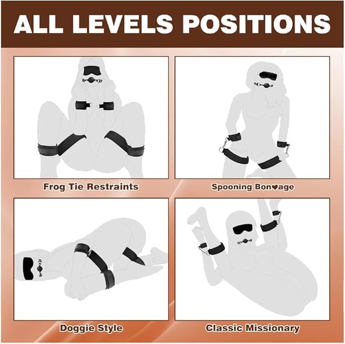 Secure Restraint System for Couples – This adjustable bondage kit is designed to keep your partner restrained and completely at your mercy. The wrist-to-thigh cuffs ensure limited movement, allowing for enhanced intimacy and exploration.
