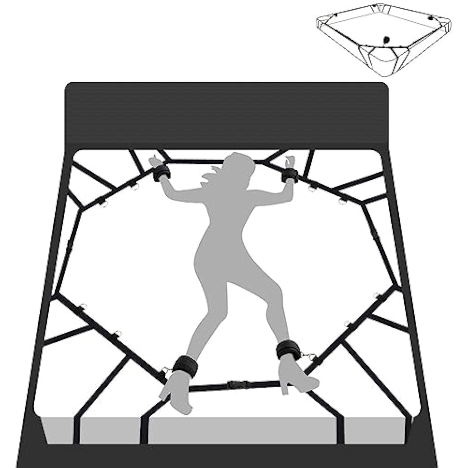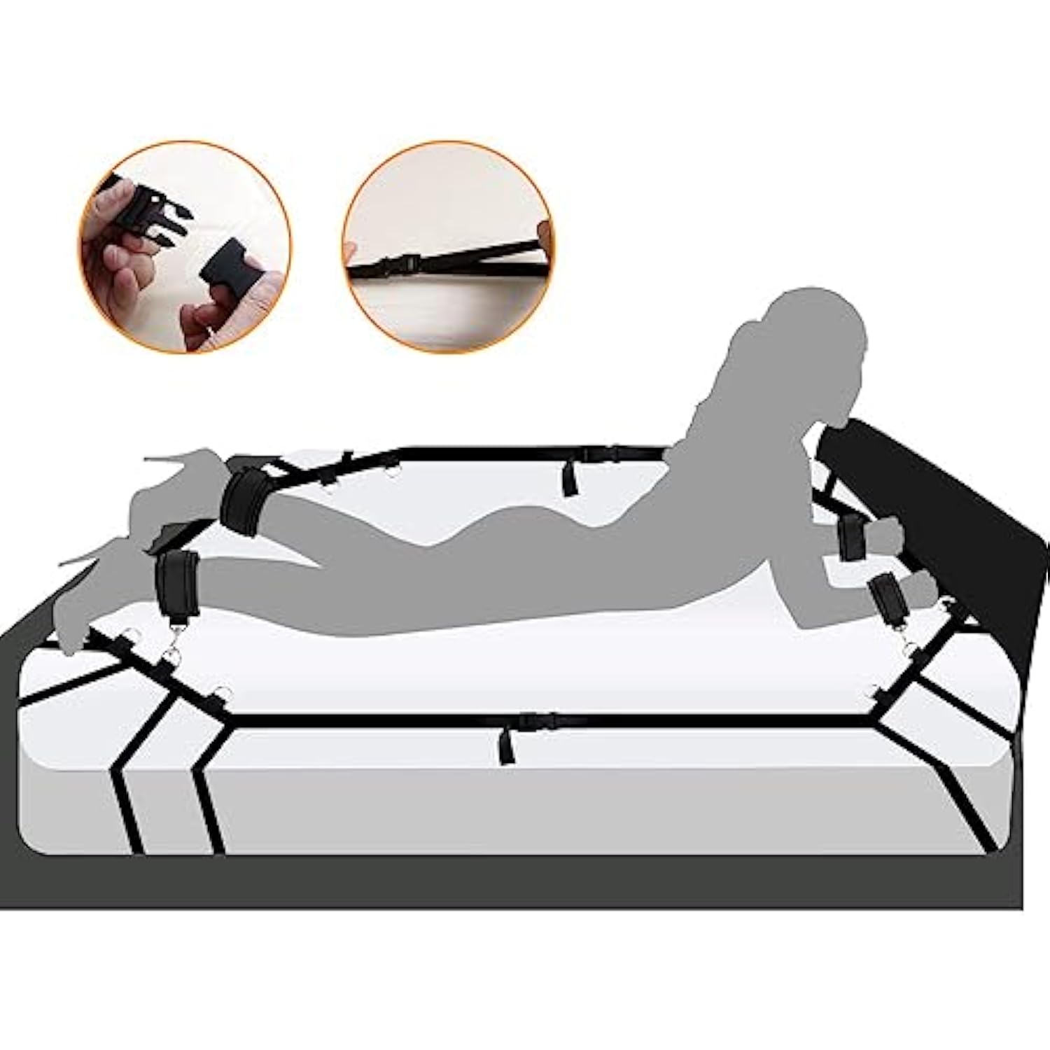 Bdsm Bondage Straps Kit Bed Sex Toy For Couple Sm Game With Handcuffs,Bed Straps Restraints Adjustable Length No Need Of Helping 1 Minutes Quick Installation (Black)