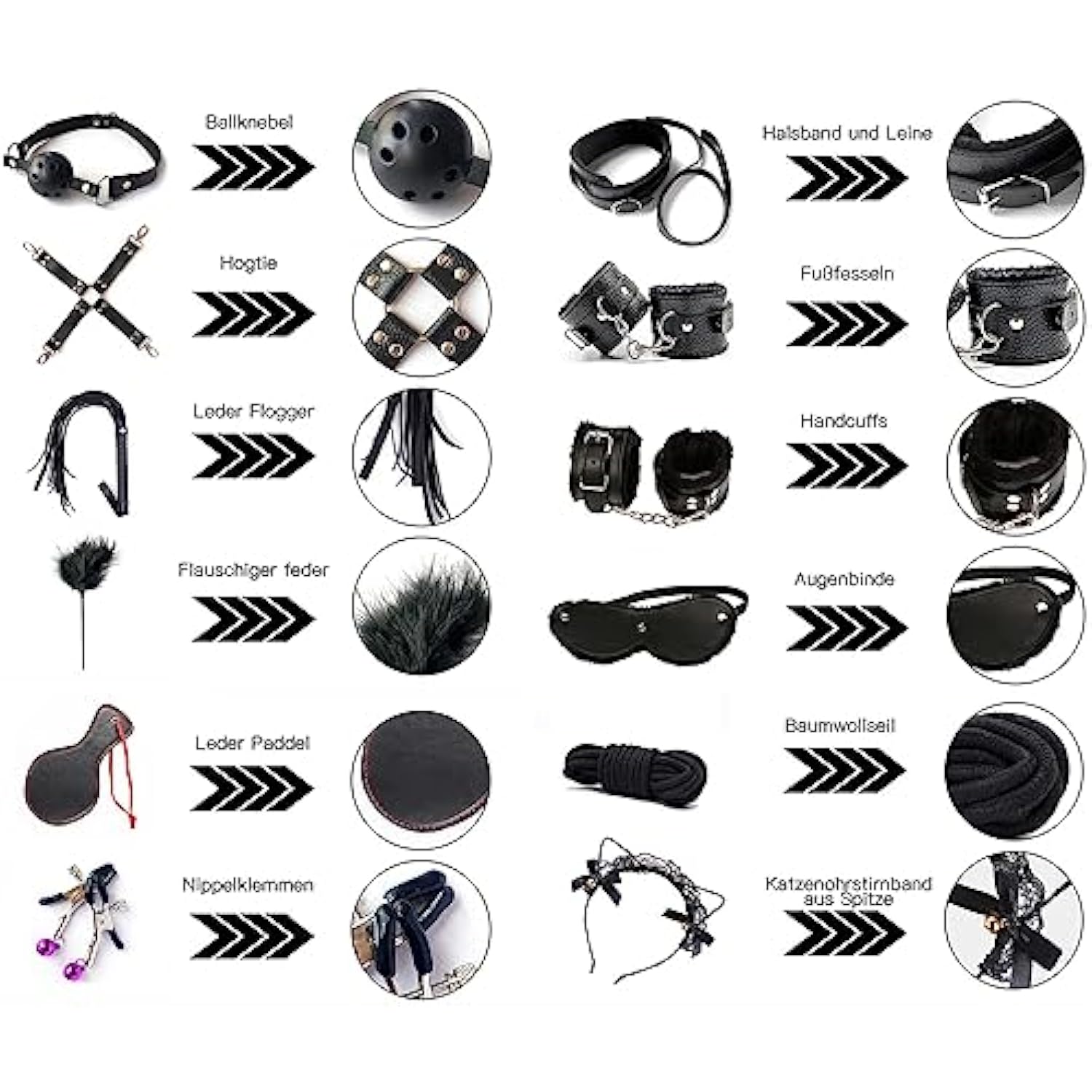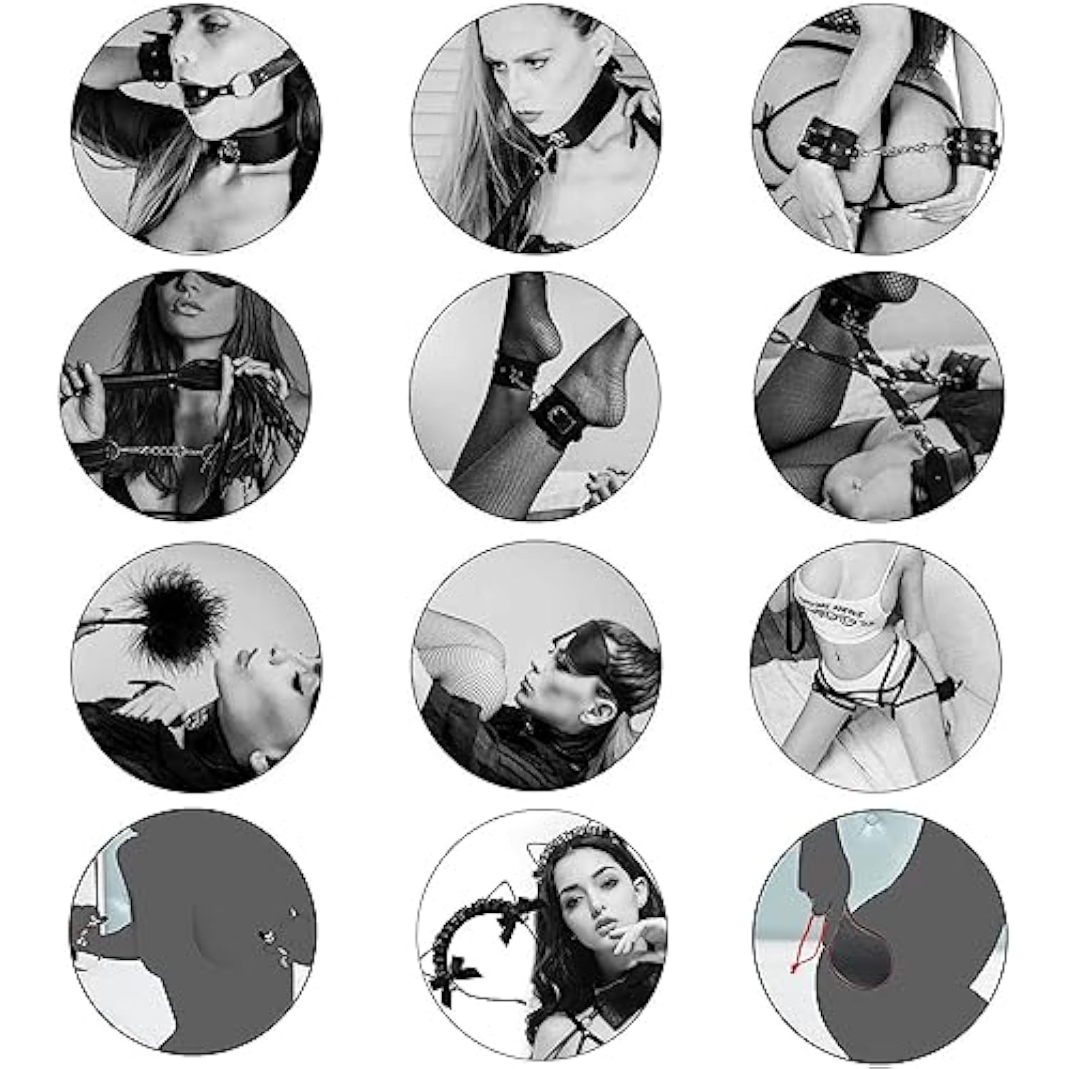 Bdsm Kit Sex Bondage Restraints, 12Pcs Bdsm Toys For Couple, Adjustable Handcuffs Collar Ankle Cuff Blindfold Feather Tickler Rope Whip Nipple Clamps Ball Gag Adult Games Sex Toys For Adult Couples