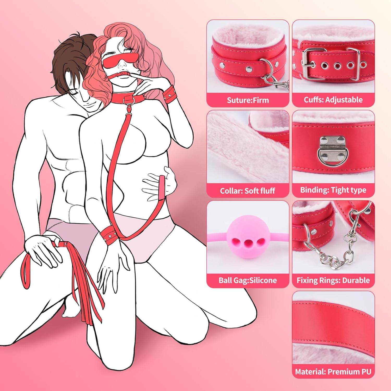 Crafted with durable, double-layered PU leather and soft inner lining, these restraints are designed for both durability and comfort. High-quality metal hardware ensures security, while the breathable silicone ball gag offers safe and comfortable wear.Perfect for Beginners & Enthusiasts