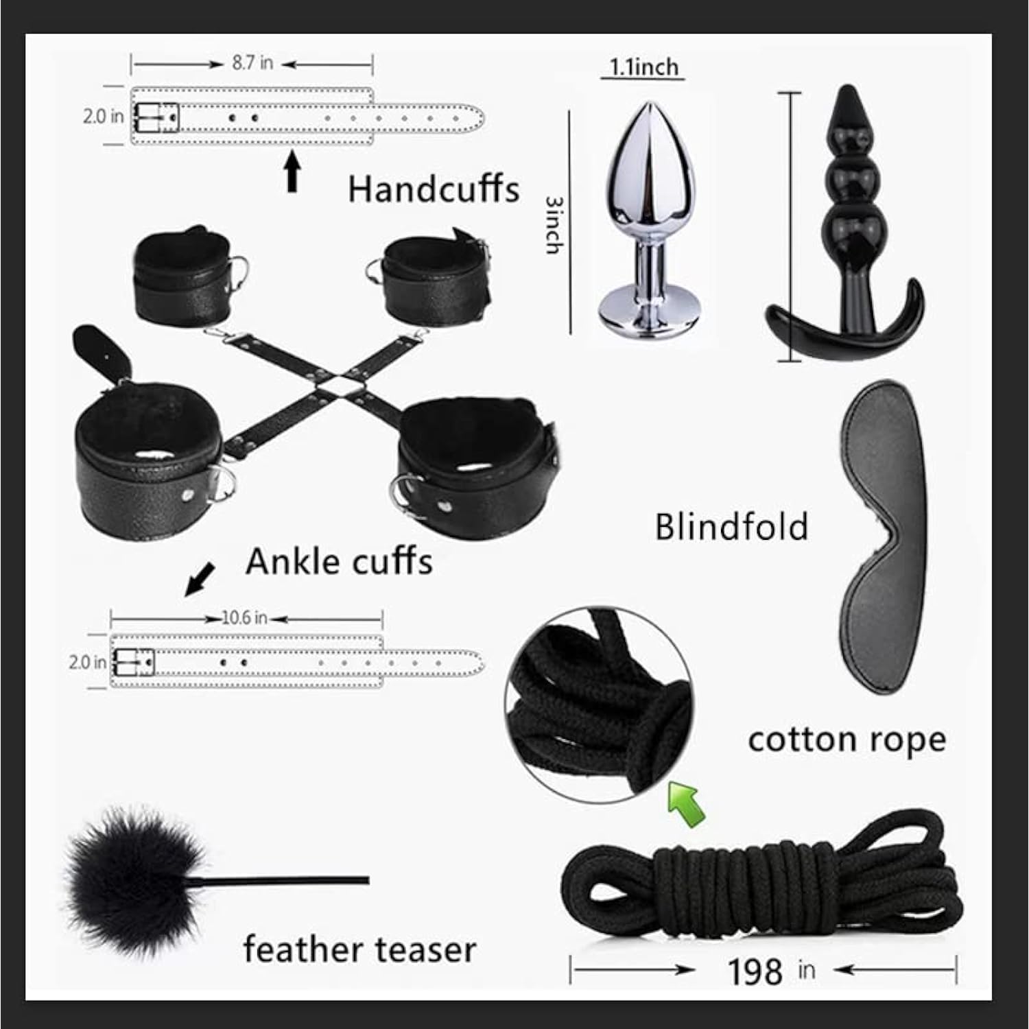 Bdsm Kits Restraints Sex Toys 15Pc Bondage Restraints Set Fetish Bed Restraints Kits For Beginners Light Sm Adult Games Safe Bdsm Cuffs Nipple Clamps Flogger Ball Gag Blindfold Rope Black Cosplay