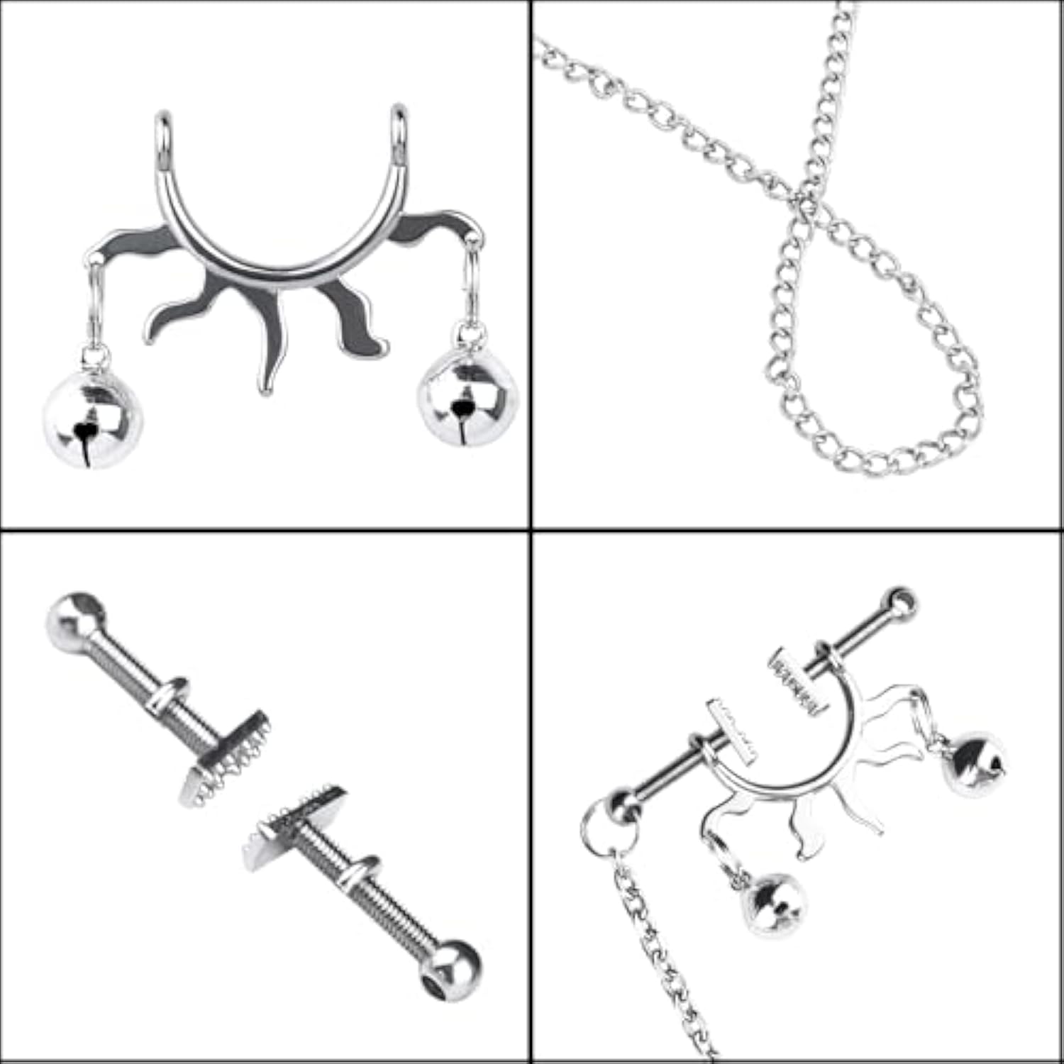 Bdsm Nipple Toys Nipple Clamps With Chain, Nipple Clips No Piercing Body Jewelry With Bells, Nipple Clip Adult Sex Toys Nipple Massager Sexual Pleasure Tools For Women Couple