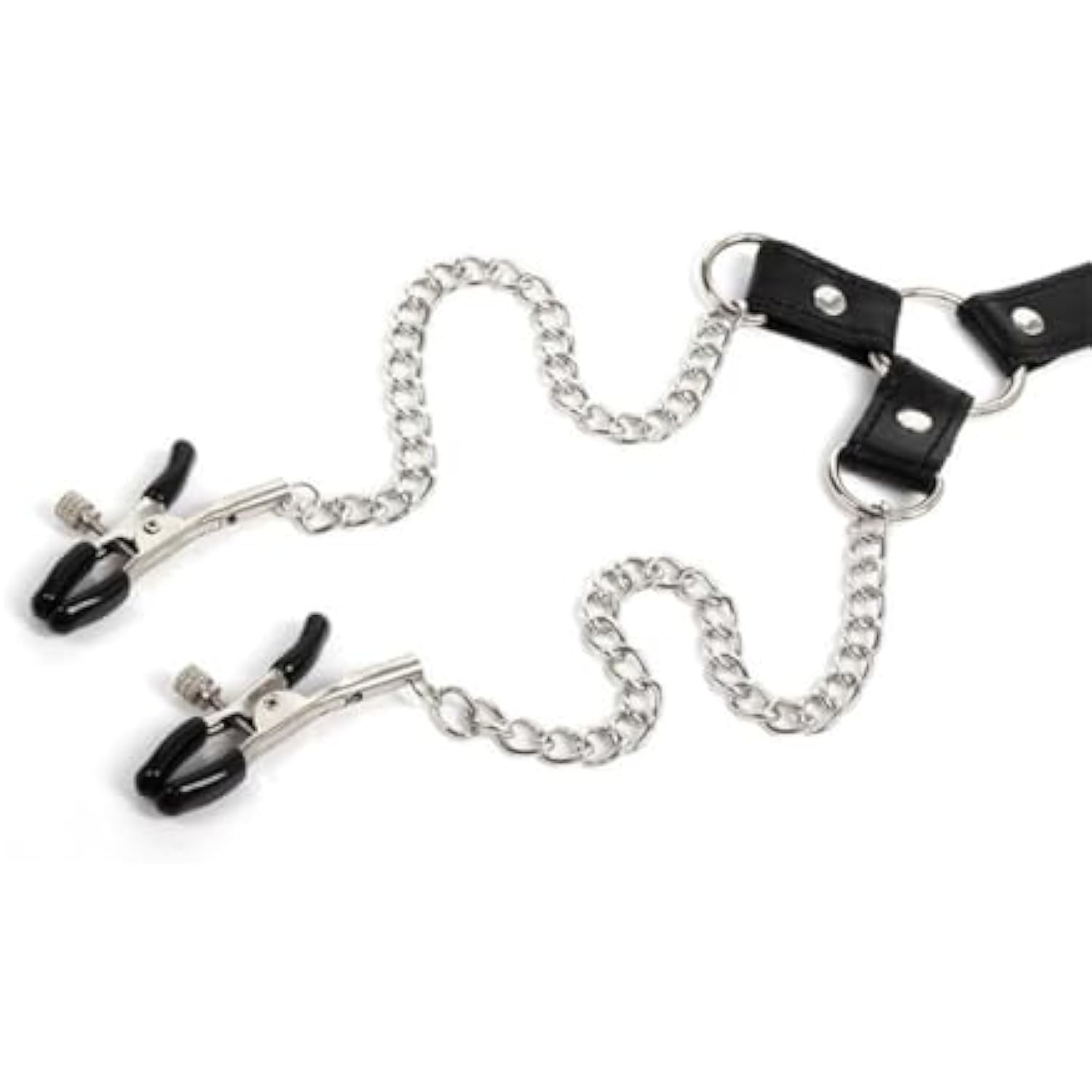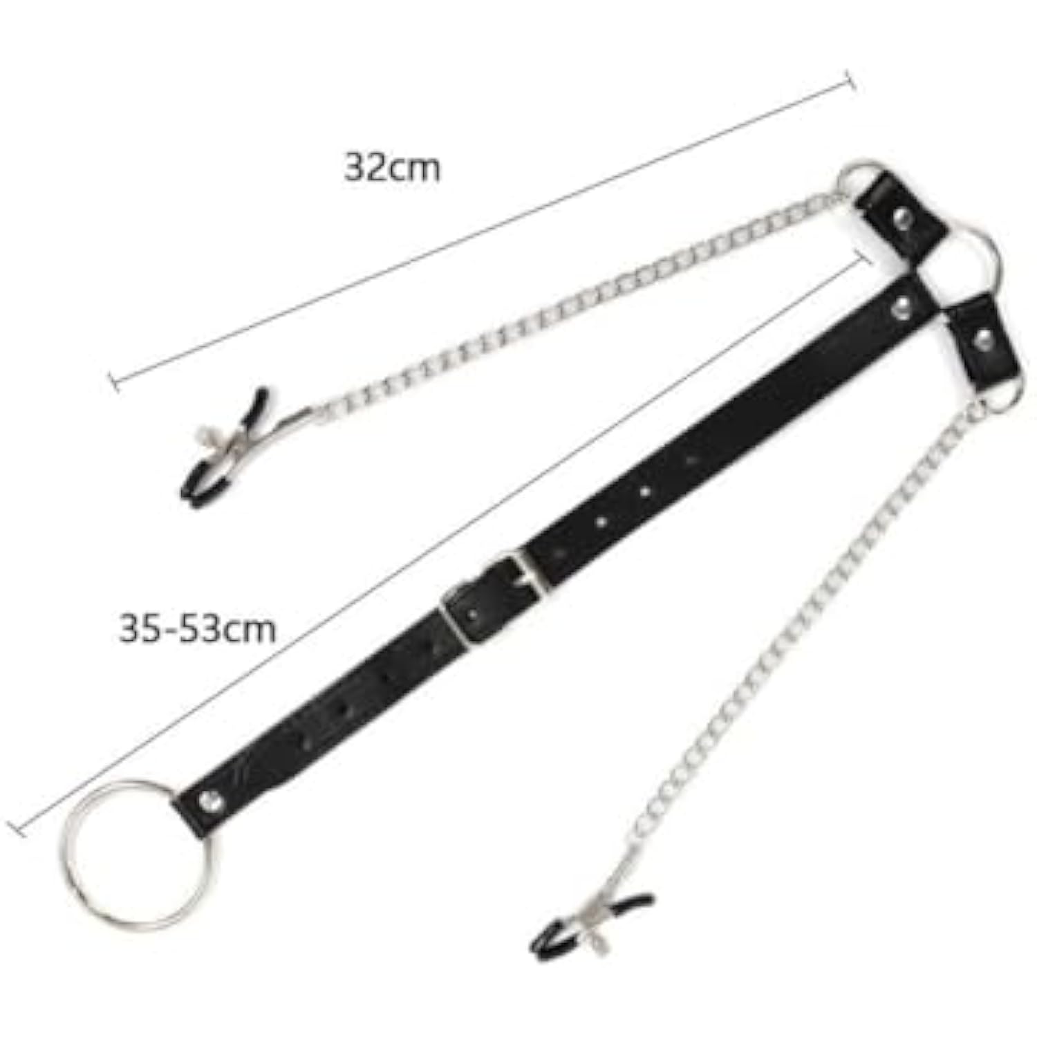 Bdsm Penis Ring With Nipple Clip For Men Pu Leather Collar Bondage Sm Extreme Slave Testicle Stretchers Pennis With Chains Sex Toy