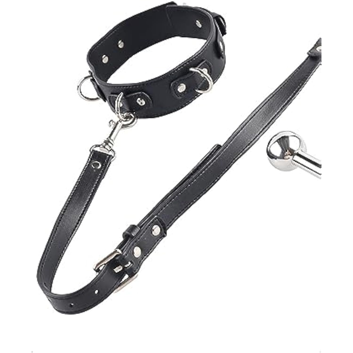 Bdsm Restraints Kit With Anal Hook Ball And Adjustable Handcuffs Collar, Leather Restraint Bondage Set For Couples,Fetish Sex Toys (1 Bead Anal Hook)