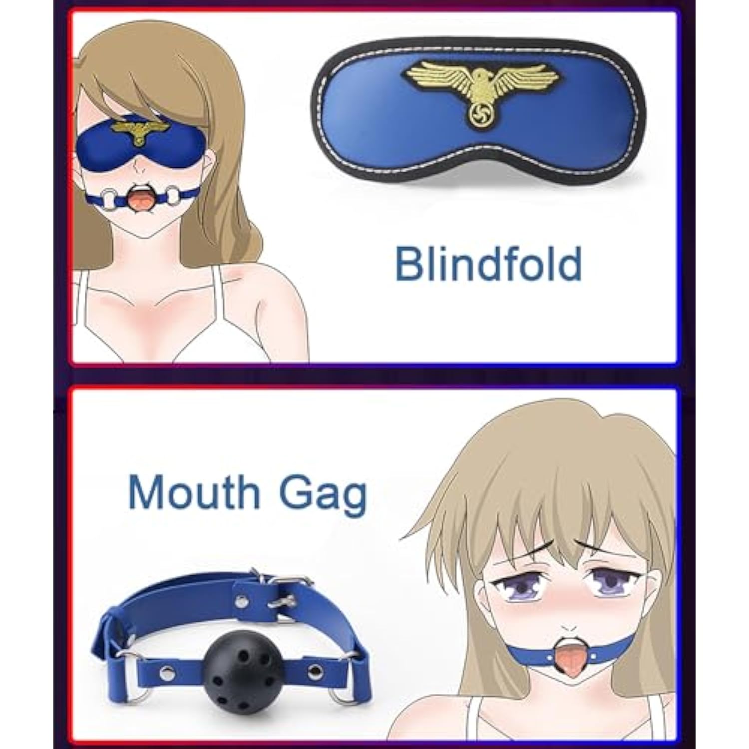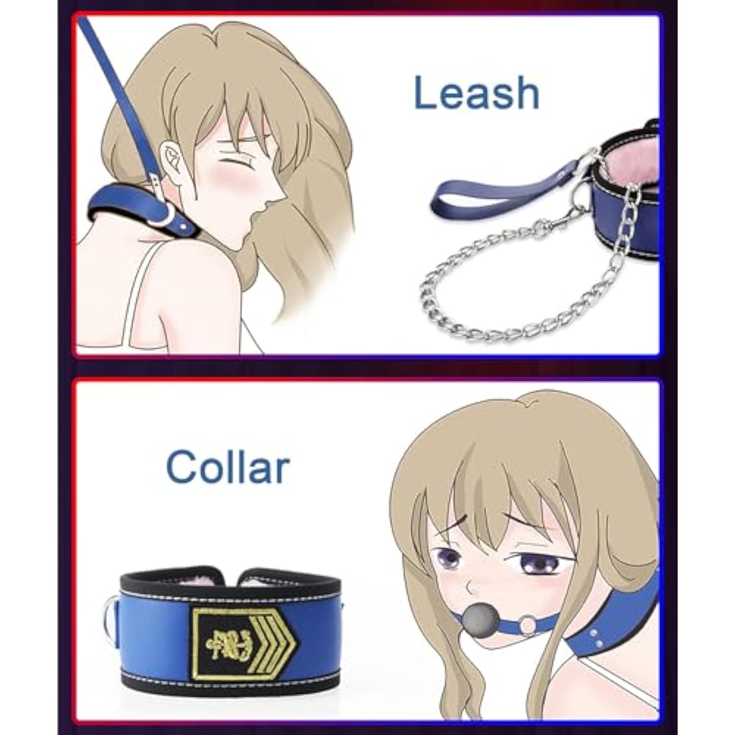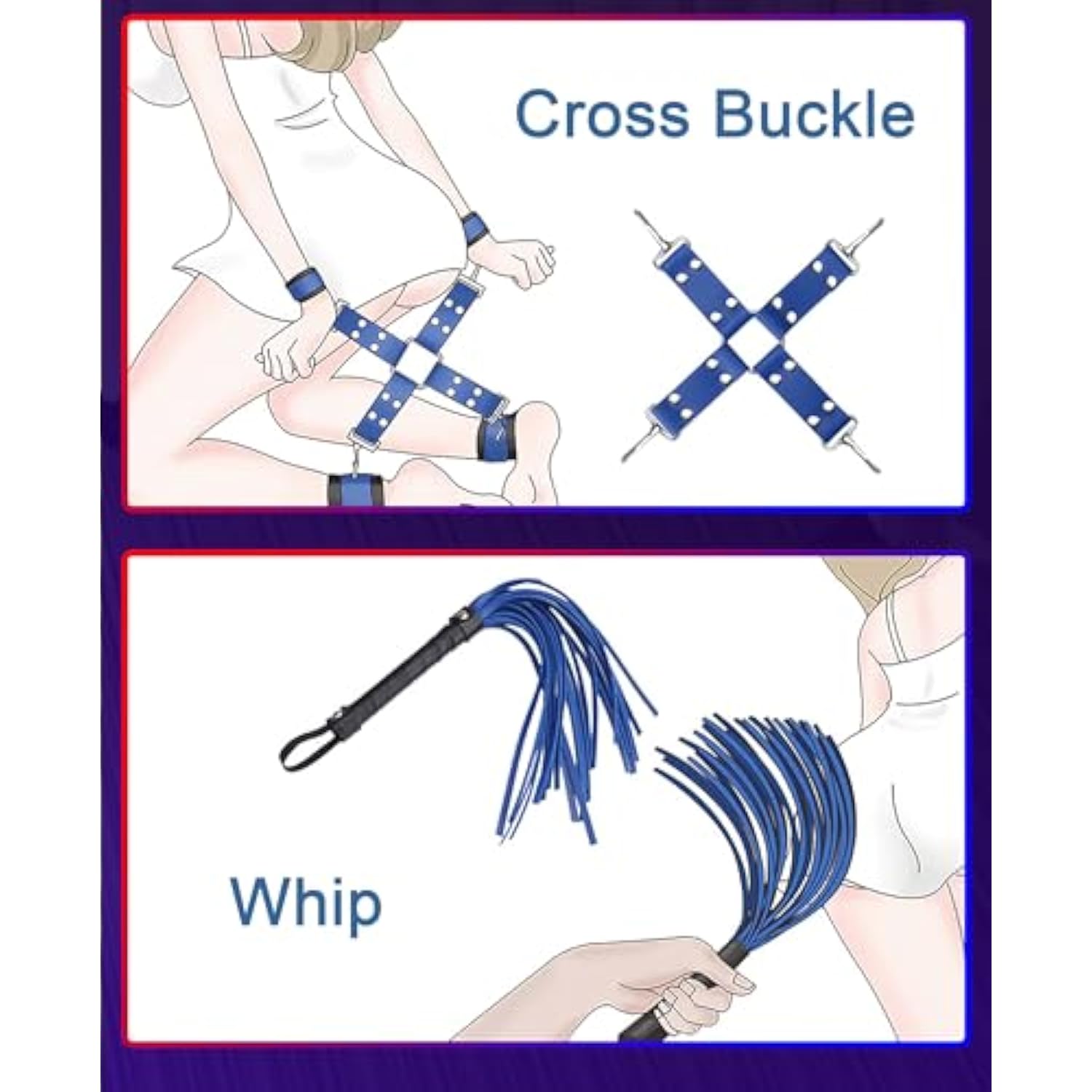 Bdsm Set 8 Pcs Restraint Kits Including Adjustable Leather Handcuffs Collar Ankle Cuff Blindfold Tickler Sex Toys For Men Women And Couples Role Play (Blue)