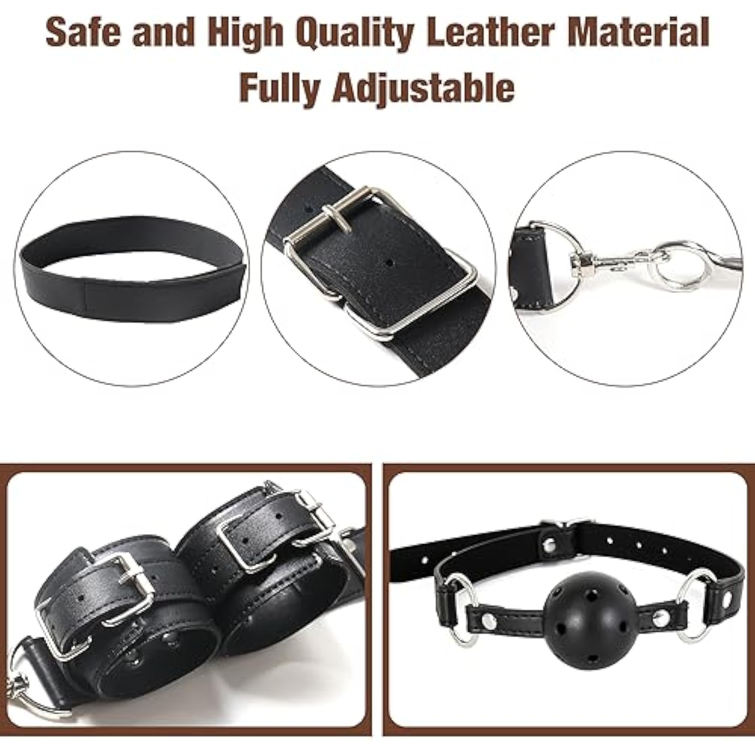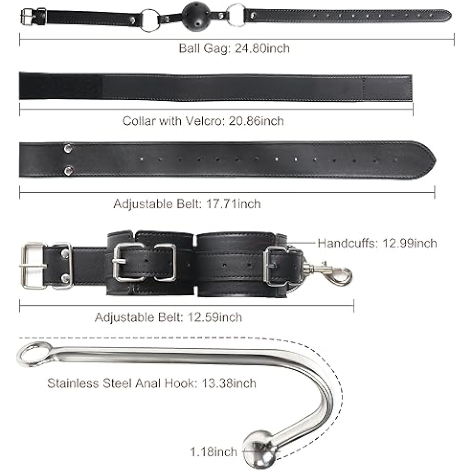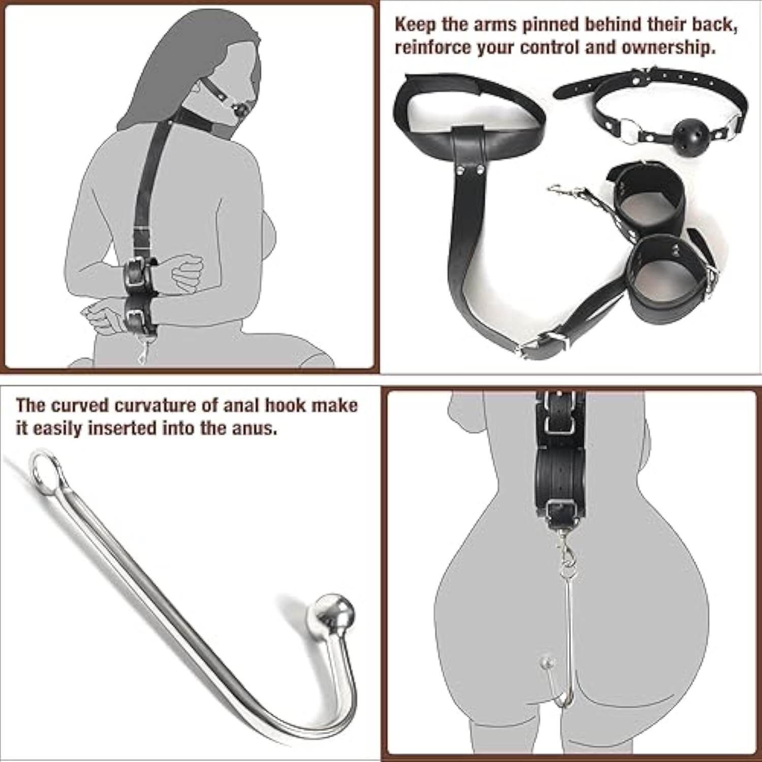 Bdsm Sex Bondage Anal Hook, Neck To Wrist Behind Back Handcuffs Collar With Anal Trainer & Ball Gag, Bed Restraints Sex Game Accessories Kinky Fetish Role Play Adult Sex Toys For Couple Beginner