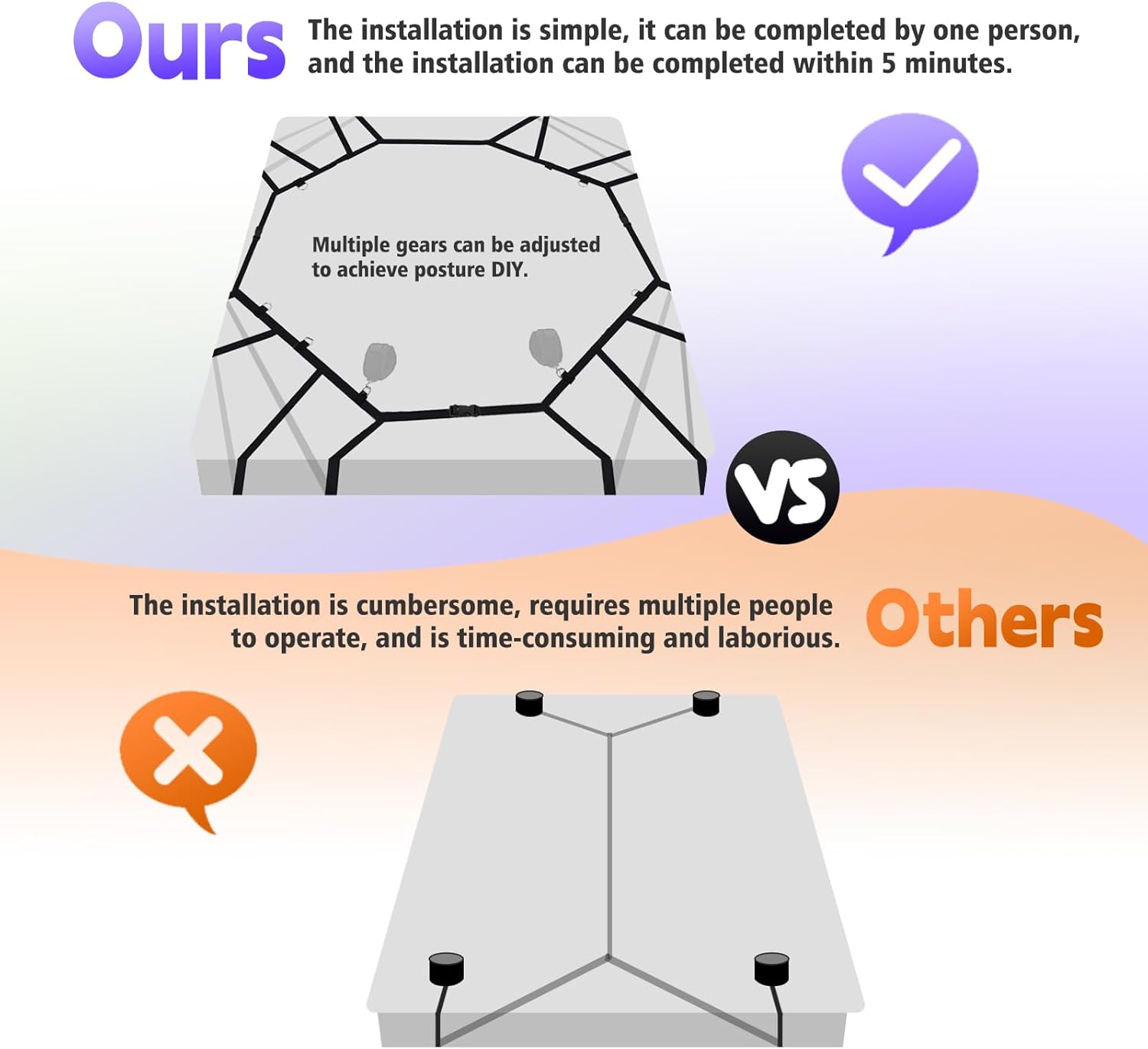 Easy Setup – Designed for quick installation in just five minutes without lifting the mattress. Simply place the straps on all four corners, adjust to fit, and secure. Supports mattresses up to 78.7 x 78.7 inches with a height of 17.7 inches.