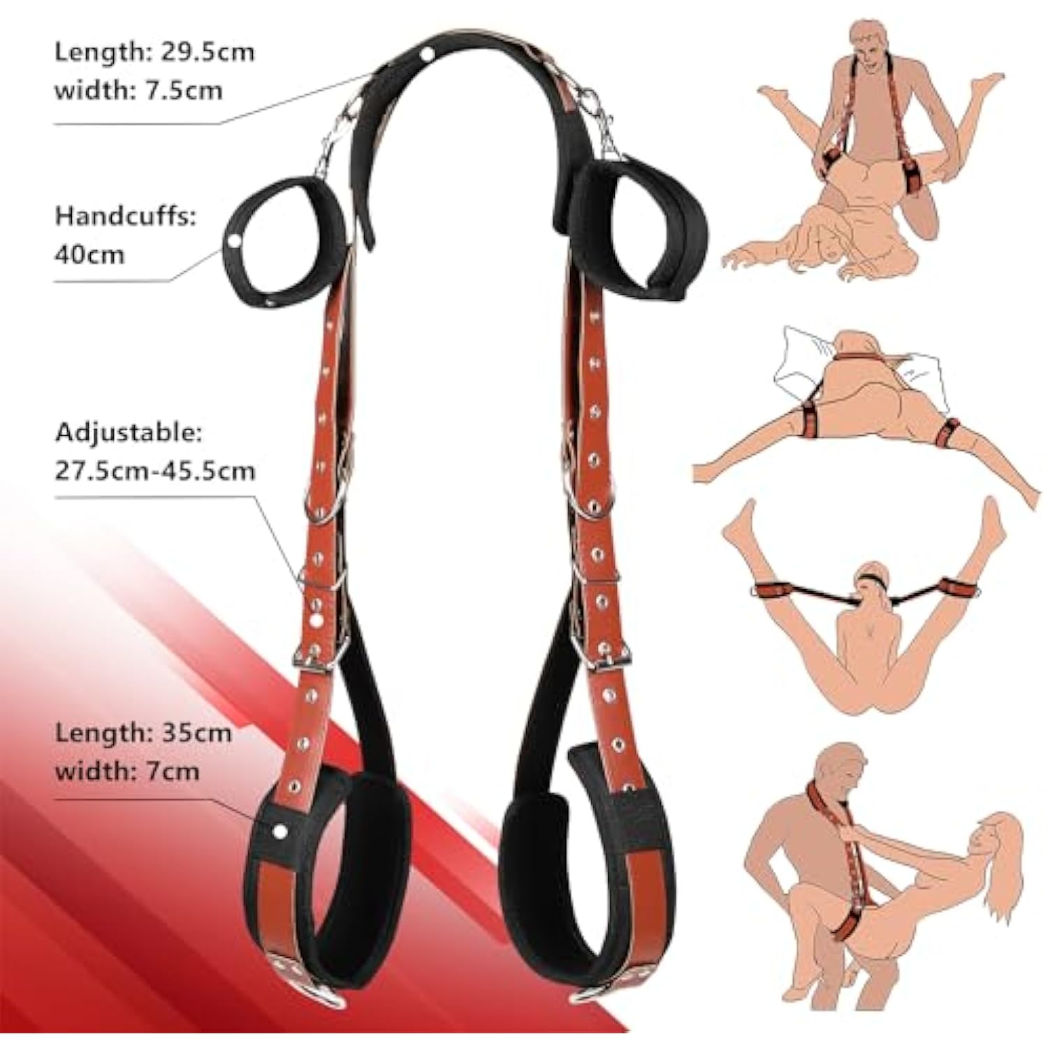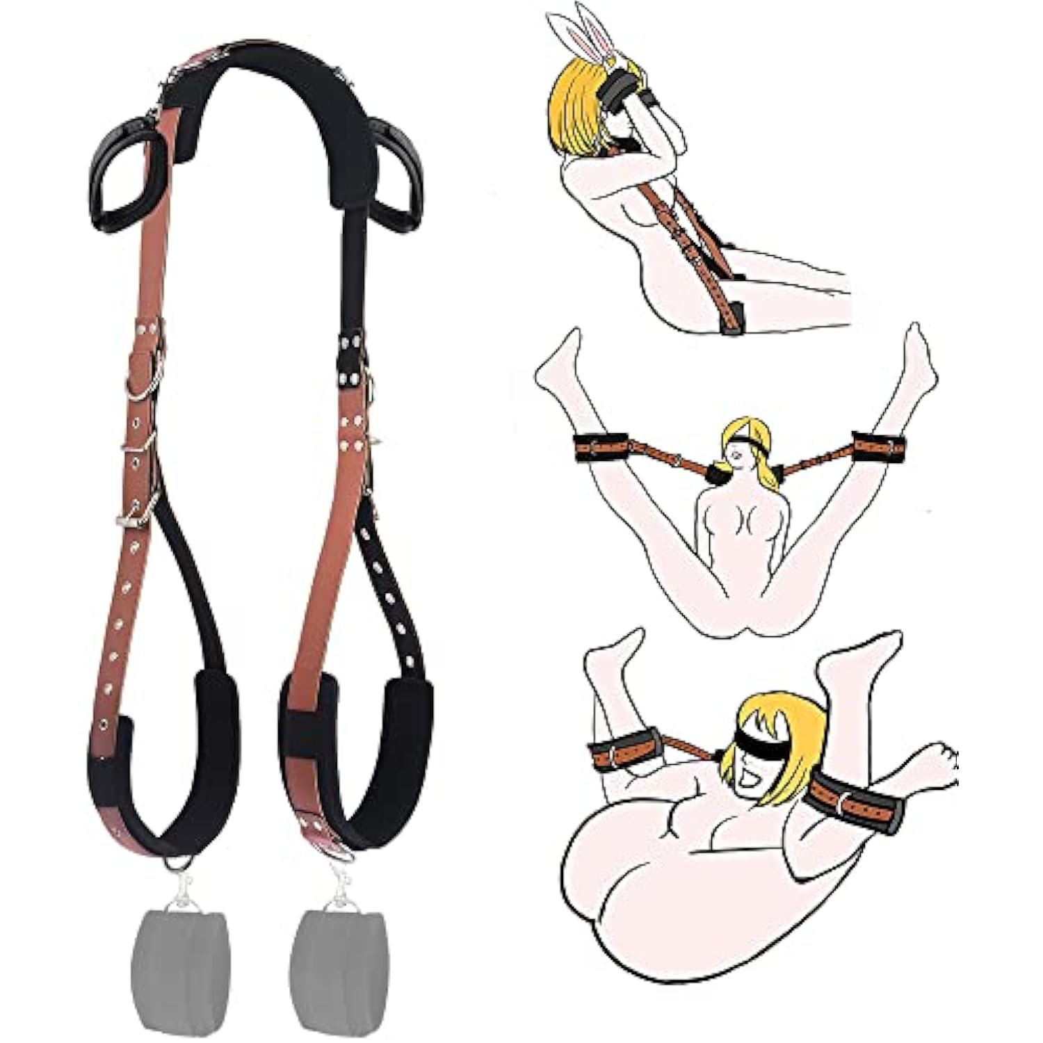 Bdsm Sex Bondage Kit - Thigh And Wrist Restraint Cuffs, Neck To Leg Sex Toy With Handcuffs, Doggy-Style Swing, And Leg Straps For Couples' Sm Games