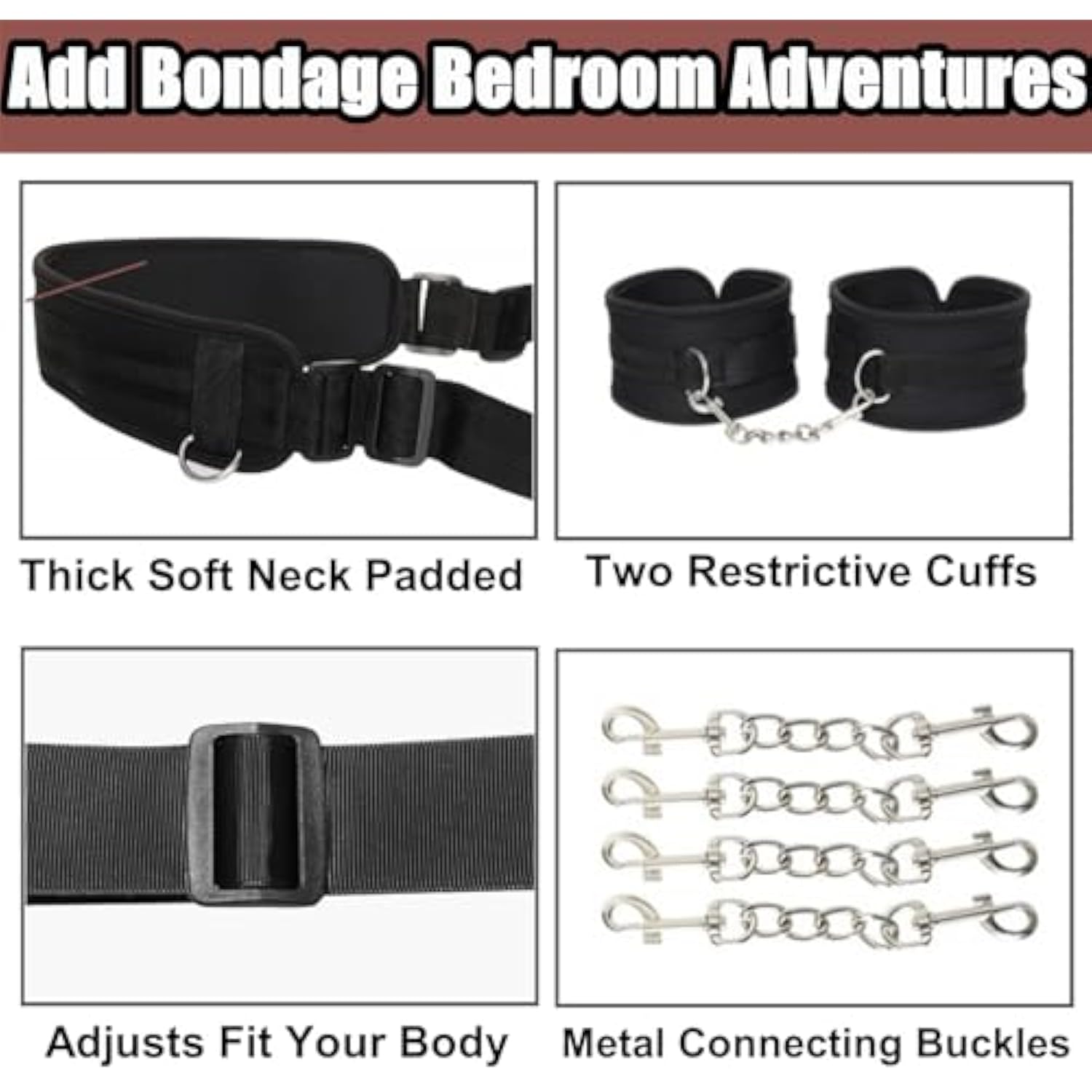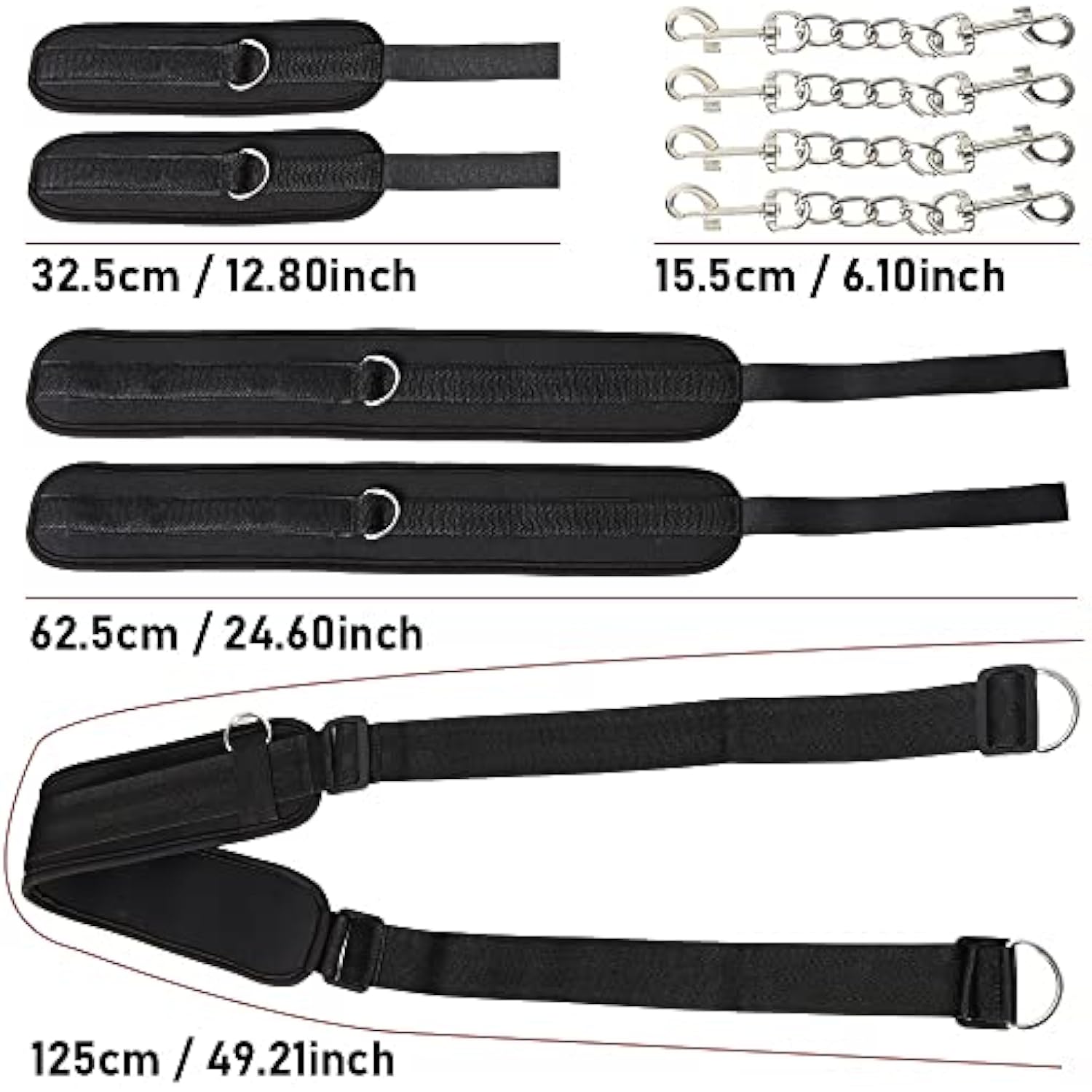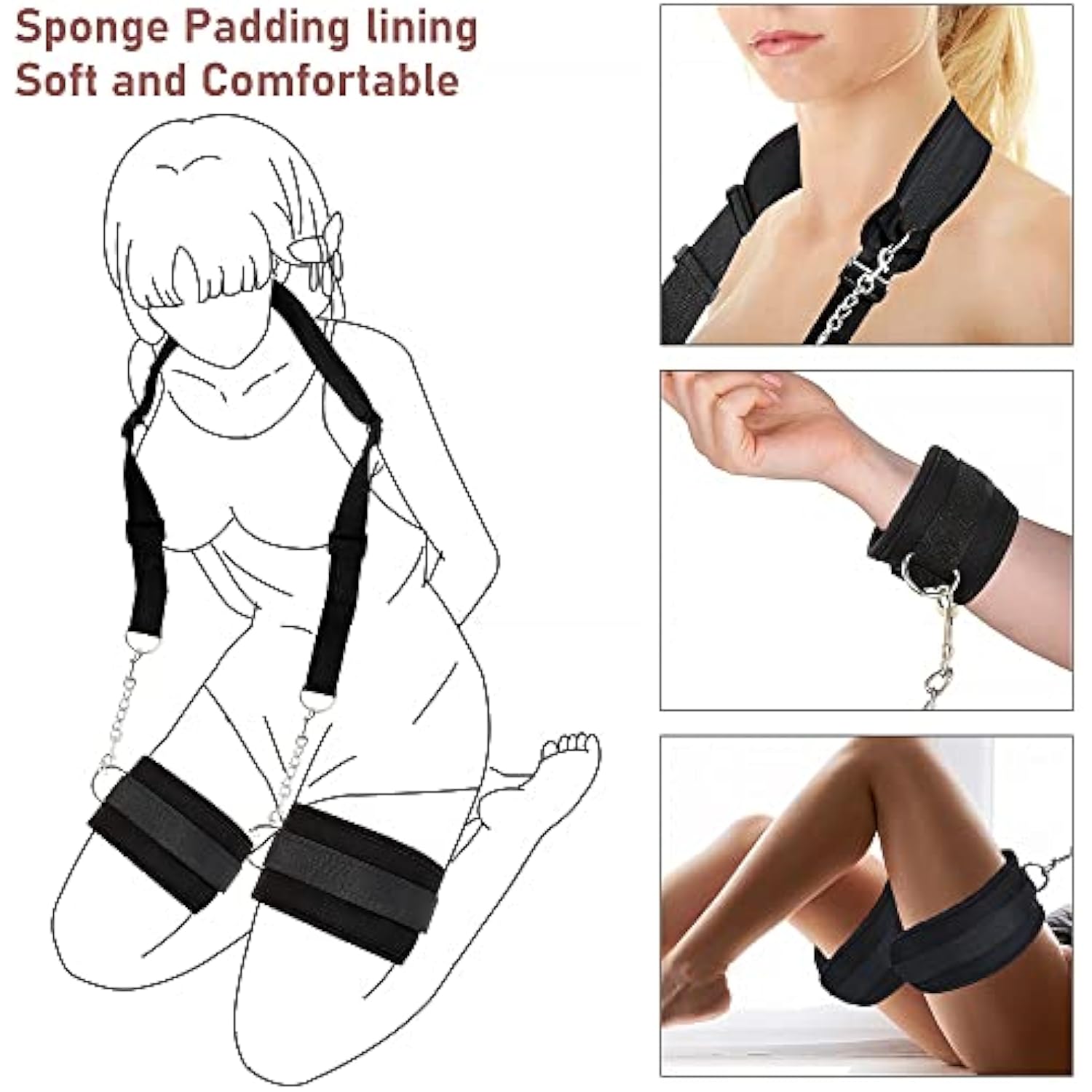 Bdsm Sex Bondage Restraints Kit- Neck To Legs/Ankle Thigh Wrist Cuffs Restraint Kit, Sm Games Adult Sex Toys With Handcuffs Doggy Swing Leg Straps Tie Set For Couples, Unisex, Black