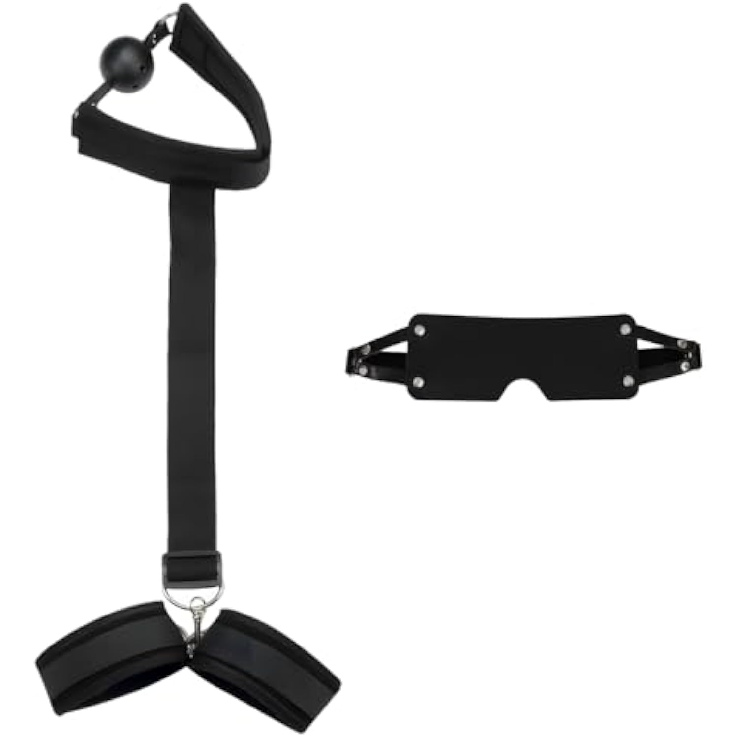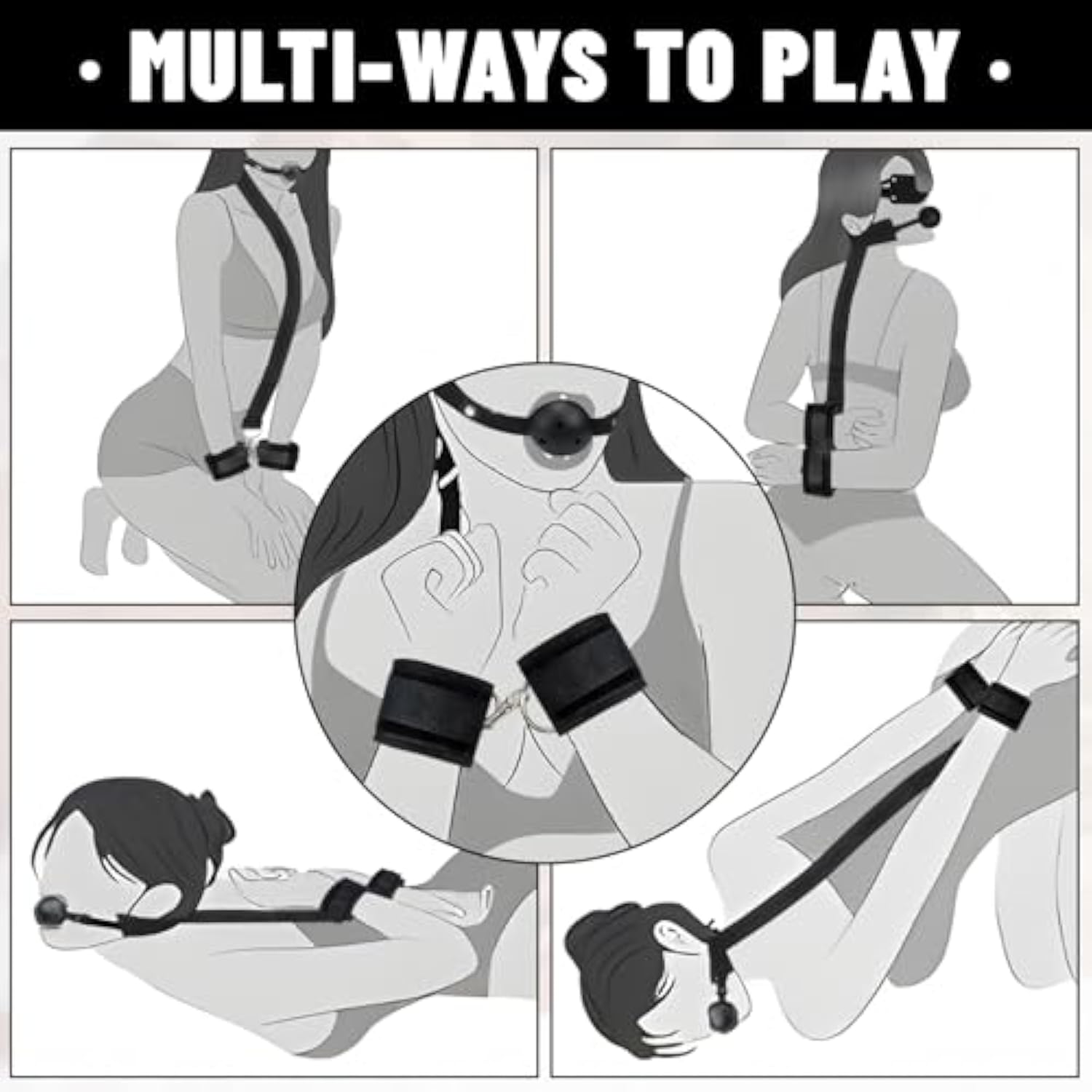 Bdsm Sex Bondage Restraints With Ball Gag & Blindfold Couples Sex Toys, Adjustable Neck To Wrist Restraint Kit Back Handcuffs Collar Sex Bed Adult Toys, Bondage Gear & Accessories Sex Thing For Couple