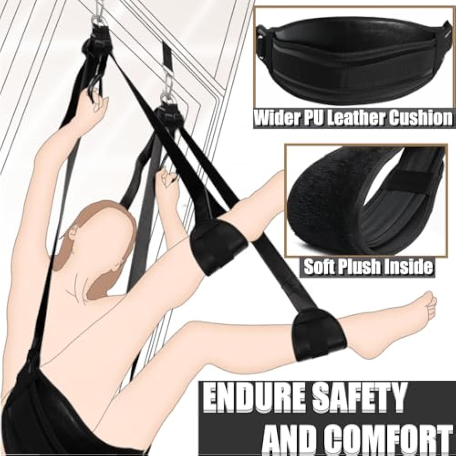 - 2 In 1 Door Sex Swing Bondage Thigh Sling: Enjoy The Sex Against Wall Easier Than Ever, The Door Sex Swing Can Make You Can Move Whatever You Like, Swing Back And Forth, Get In All Different Types Of Positions You Can’T Do In The Bed With Door Sex Swing