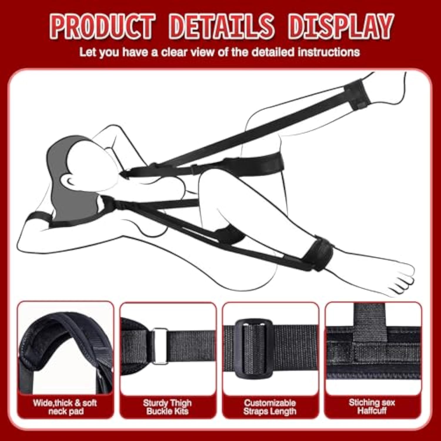 | ? Bdsm Bondage Restraints Kit For Couples: Crafted From High-Quality Materials, This Bondage Set Features Thicker Padded Nylon Straps, Which Is More Comfortable. Ideal For Couples Looking To Spice Things Up In The Bedroom And Explore Light Bdsm Play With Safety And Style. | | ? Adjustable Bondage Gear For All Body Types: The Thigh Restraint Straps Are Equipped With Slide Buckles, Making Them Easy To Adjust For Both Slim And Thick Thighs. Ankle Cuffs Feature Velcro Closures That Adapt To Various Sizes, Providing A Snug And Secure Fit For Comfortable Restraint Play. | | ? Upgraded Comfort With Thick Padding: Designed For Prolonged Use, The Ultra-Soft Padding Offers Enhanced Comfort Around The Ankles, Thighs, Or Wrists. It Allows You To Gently Restrain Your Partner While Giving Better Access To Their G-Spot And Internal Sensitive Areas For Deeper And More Satisfying Pleasure. | | ? Portable And Travel-Friendly Sex Toy: Lightweight And Easy To Store, This Restraint Kit Fits Neatly Into Your Bag For Discreet Travel. Whether It’S A Night At A Hotel Or A Spontaneous Car Session, This Toy Helps You Easily Spread Your Partner’S Legs And Enhance Intimacy Anywhere, Anytime. | | ? Great Sex Toy Gift: This Beginner-Friendly Bondage Toy Makes A Naughty And Exciting Gift For Your Partner Or Submissive. Whether You'Re Exploring Light Restraint Or Adding To Your Bdsm Collection, This Kit Delivers Pleasure, Control, And Connection In Every Session. | |