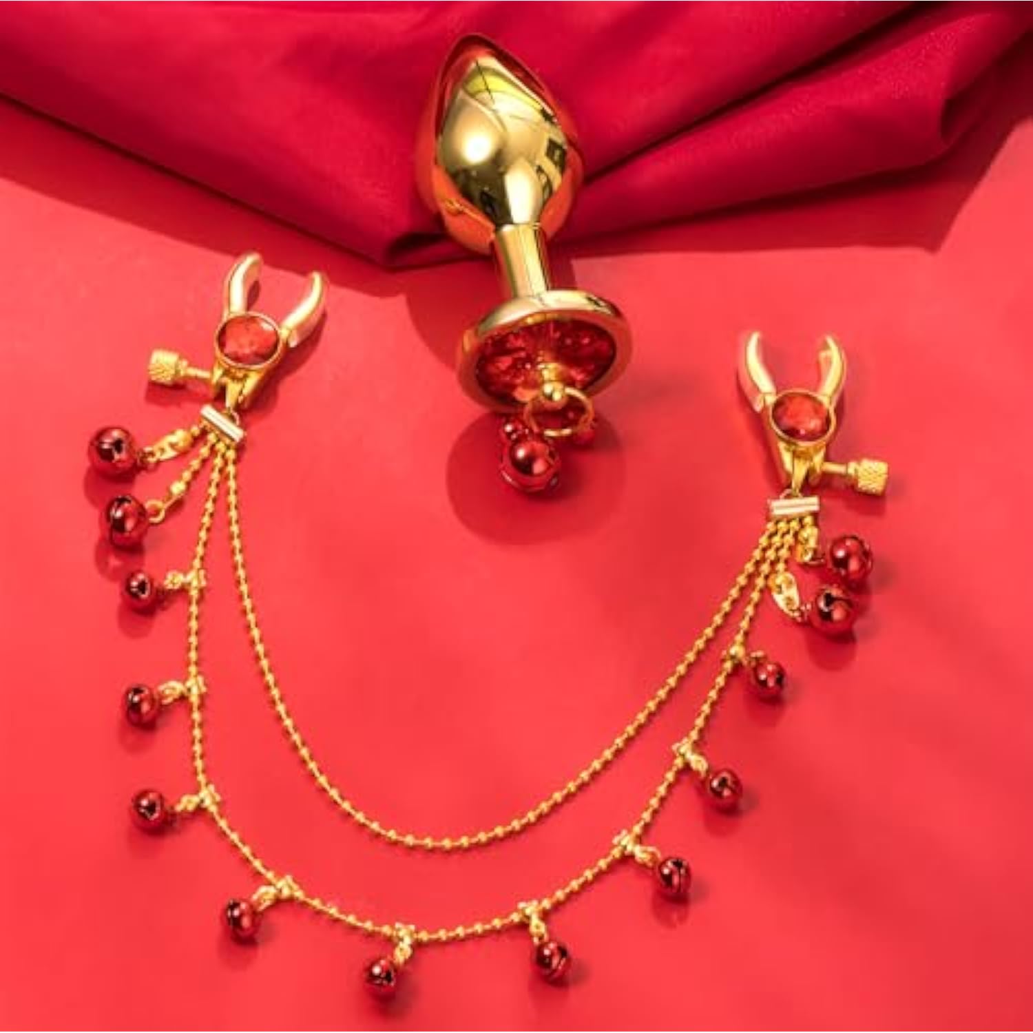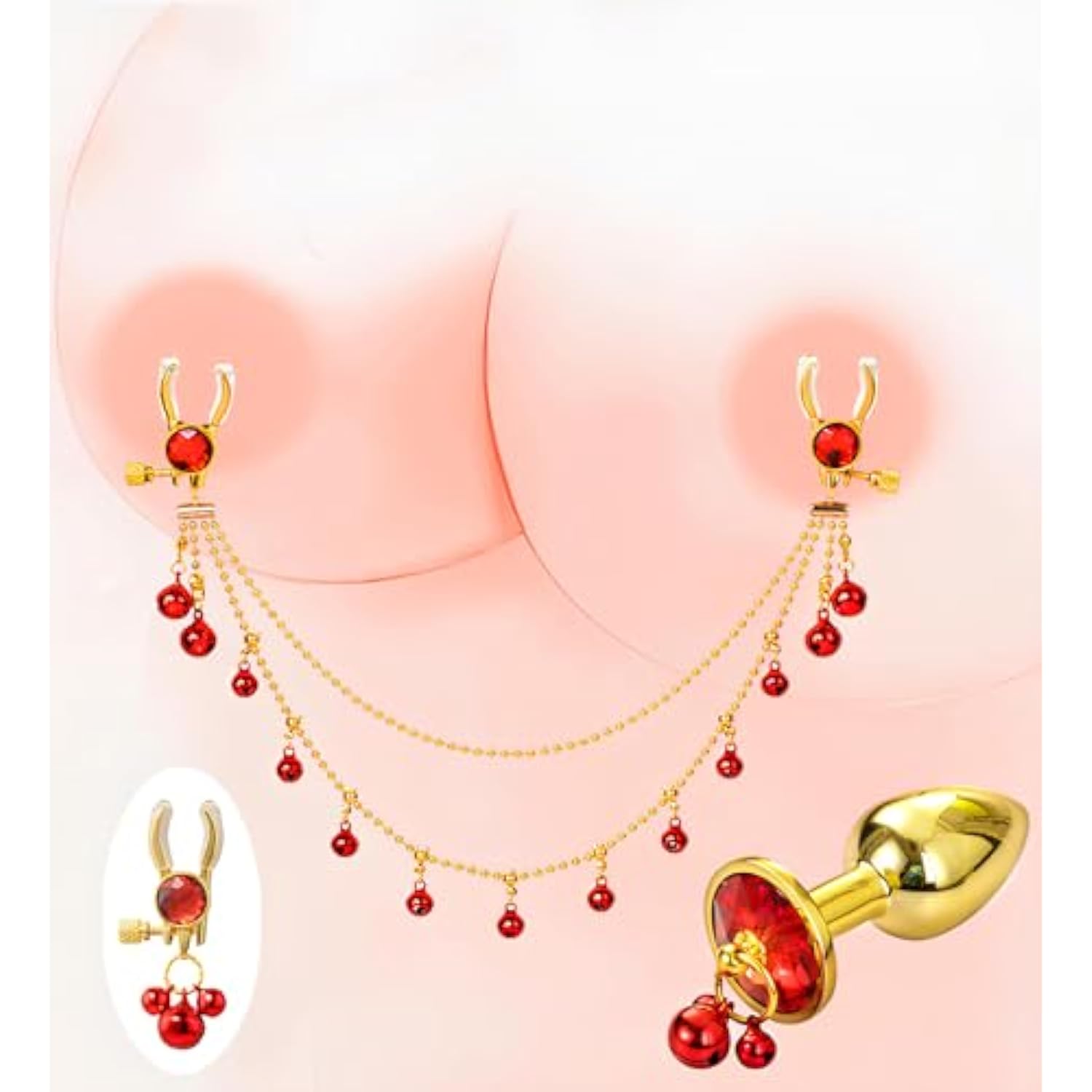 | ??Multi-Sensory Stimulation, The Combination Of Nipple Clip, Clitoris Clip And Anal Plug Is Designed To Enjoy Full Body Stimulation. Use It In Combination With Different Scenarios To Enjoy More Unprecedented New Experiences And Add A Little Sm Fun To Your Sex Life. It Is Very Suitable For Kinky Role Playing, Bondage And Sm Games And Bedroom Bdsm. | | ??Adjustable And Removable Design, You Can Easily Adjust The Tightness Of The Clamp By Turning The Screw, Adjust To The Intensity That Best Suits Your Sexual Arousal Points, Suitable For Nipples At All Levels, Avoid The Feeling Of Being Too Loose And Too Tight, Stimulate And Massage The Nipples And Clitoris For The Purpose Of Flirting. The Chain And Bell Of The Nipple Clamps Are Detachable And Suitable For Different Scene Needs. | | ??High Quality Workmanship, The Nipple Clamp And Anal Plug Set Adopts Advanced Gold Plating Technology, And The Workmanship Is High Quality And Exquisite. The Whole Golden Color Shines Under The Light. When The Body Swings, The Small Bell Enhances The Feeling Of Falling Objects And Makes A Crisp And Pleasant Sound. Add A Little Fun To The Night. | | ??Safe Material, Gold-Plated High Quality Metal And Soft Rubber, Friendly And Healthy For Your Nipples And Clitoris, The Metal Clip Is Wrapped In A Rubber Shell, Providing A Gentle Pinching Feeling Without Scratching The Skin. The Rubber Shell Is Super Soft And Paired With Sparkling Crystals, Sexy And Charming, Decorate Yourself For Your Lover And Spend A Night Of Passionate Debauchery! | | ??Easy To Carry, This Bdsm Accessory Is Small, Lightweight, Portable And Can Be Easily Stored For Travel, Allowing You To Enjoy Sensual Fun On The Go And Enhance Your Kinky Couple Play Experience. | | ??Privacy Protection, We Attach Great Importance To