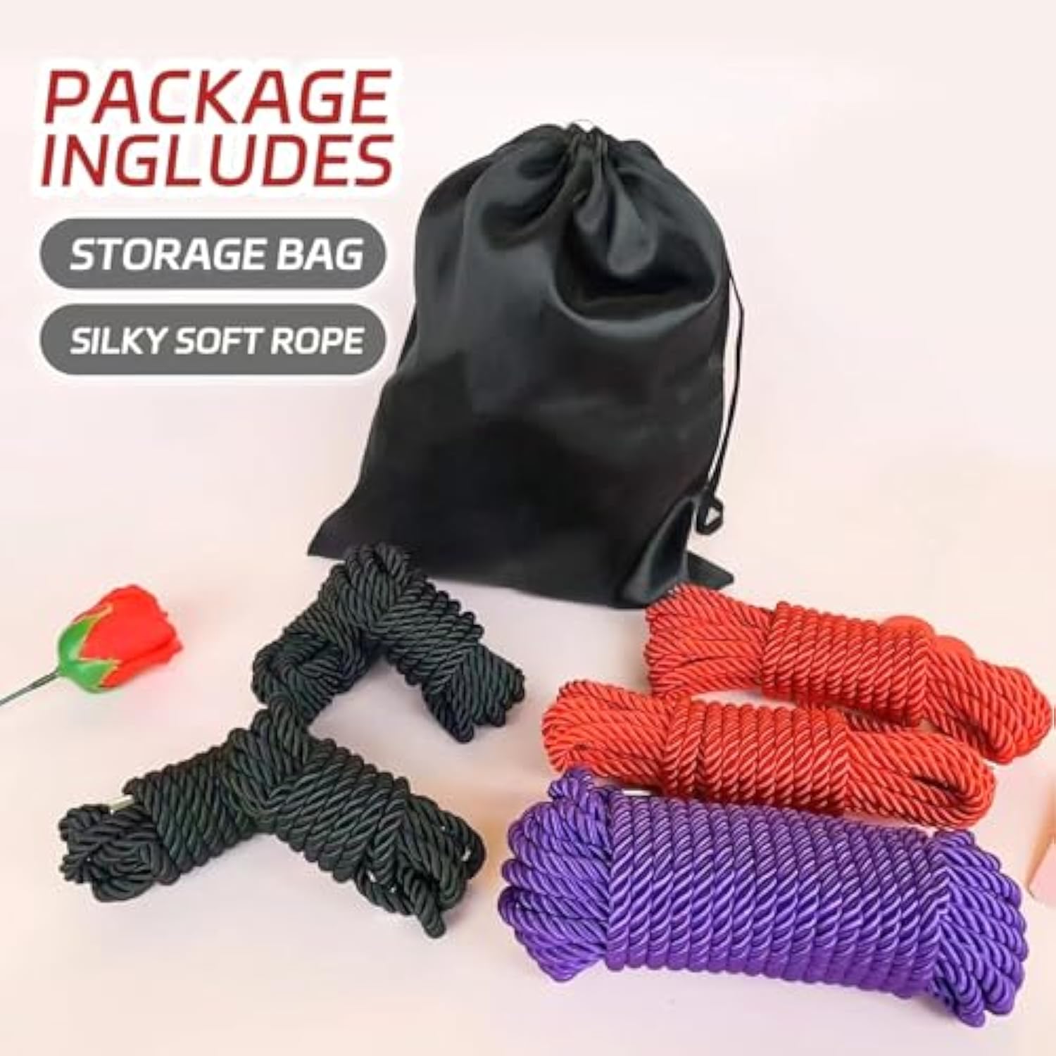 | Perfect Combination Of Different Sizes: Our Erotic Rope Toy Measures 8Ft 16Ft 32Ft Long, 8Mm Thick. The Combination Of Ropes Of Different Sizes Makes It Ideal For Multiple Restraint Positions And Techniques. Bring A New Level Of Excitement And Pleasure To Your Intimate Moments. | | Exqusite Quality: This Soft Silk Shibari Rope Is Exquisitely Soft To The Touch, Ensuring A Sensual And Comfortable Experience. The Gentle Texture Of The Sex Rope Against The Skin Will Heighten Your Sensations, Intensifying Every Touch And Caress And Give You A Better Experience. | | Maximize Pleasure: Ordinary Sex Can Be Boring Sometimes. Climax The Pleasure And Intensify Playtime With This Exciting Bdsm Restraint. Take Your Sex Art To Greater Heights And Leave Her Squirming In Pleasure, Thanks To This Bondage Rope. | | Safe And Flexible: Bdsm Shibari Sex Rope Offers The Perfect Blend Of Safety And Flexibility. The Gentle Nature Of This Rope Helps It Leave No Marks On Your Skin Even After Hours Of Use. Explore And Create Multiple Breathtaking Bondage Techniques And Patterns. | | Ideal For Beginners And Advanced Explorers: To Every Bdsm Enthusiast, This Bondage Sex Rope Is Meant For You. Open A New World Of Pleasure With This Kinky Rope. Vary Up Your Bedroom Adventures With Our Sex Rope. Suitable For Practicing Shibari Rope Art. | |