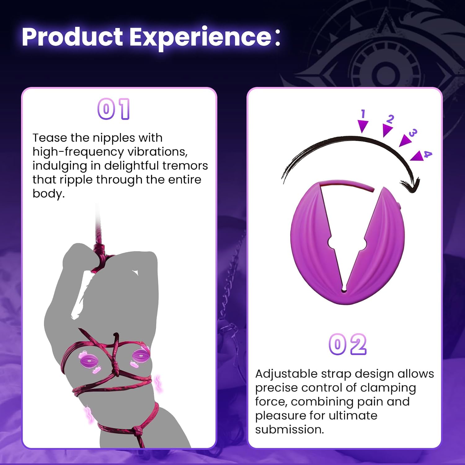 Start by using the included nipple suction accessory to gently firm the nipples, then attach the clamps. Begin with the fourth vibration setting to gradually awaken your senses, and progress to deeper sensations as you explore.