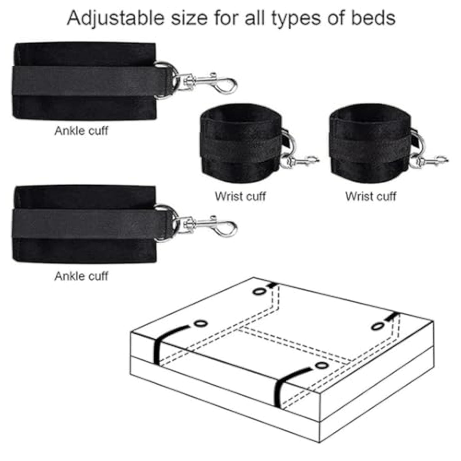 | ???Funny Game,Bring A New World- Whether You Are A Beginner Or An Experienced Sm Enthusiast, This Neck Bondage Rope System Can Meet Your Various Needs And Bring Endless Fun To Various Types Of Games. | | ???Differentiation-The Bed Restraints Including Soft Blindfolds Are Made Of Skin-Friendly Material, Non-Poisonous And Odorless, Putting Soft Eye Mask On The Lover'S Eyes To Give Them A Sense Of Stimulation,When You Tickle Them On Their Backs And Legs, They Will Beg For More | | ???Adjustable Buckle And Velcor Design -Bdsm Binding Handcuffs, Collars And Shackles And Straps Can Be Easily Changed In Size And Length, Both For Men And Women, So The Sexy Restraints Are Comfortable And Convenient. | | ???Bdsm Sex Bondage Restraint Toys Kit Fits For Both Men And Women, Give Your Lover A Special Surprise, Which Is Strong And Are Lined With Soft Material That Does Not Hurt The Wearer But Also Comfortable And Safe, You Can Buy This Restrain Kit As A Intimate Gift For Your Lover. | | ???Discreet Packaging - Boxed In A Confidential Package And Delivered Without Any Sensitive Words, Can Protect Your Privcy Completely. | |