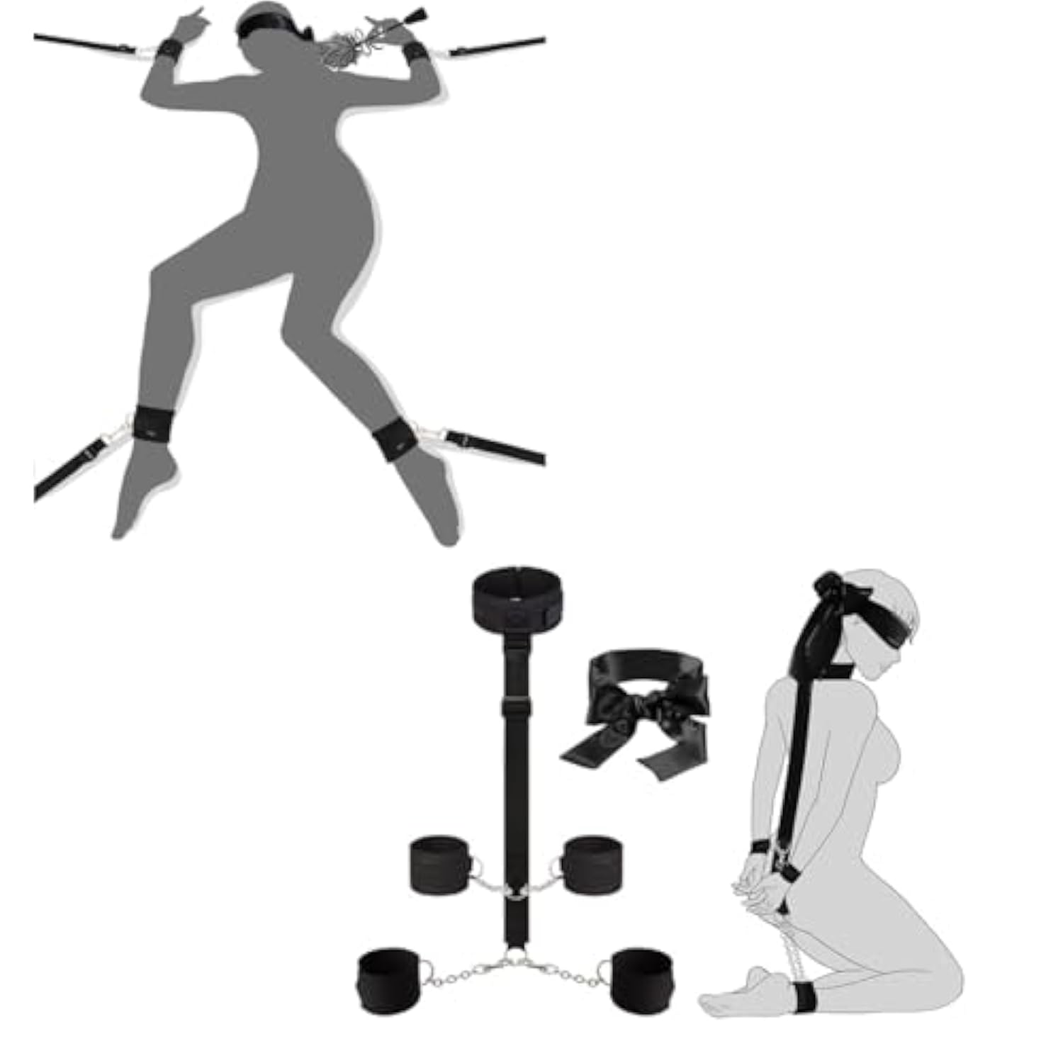 | Two Different Product Combinations Can Bring More Matching | | Superior Nylon, Light, Comfortable And Adjustable. | | Exquisite Design With Fluff Lining In Handcuffs And Shackles. | | Bdsm Neck To Wrist And Ankle Restraint Kit - This Sexual Bondage Kit Contains A Total Of 4 Accessories (1X Restraint Collar, 2X Handcuffs, 2X Ankle Cuffs, 1X Blindfold), Whether You Are A Sm Beginner Or Experienced Sm Lovers, This Adult Toy Bondage Set Can Meet Your Diverse Needs And Bring More Fun To Different Types Of Play. | | Various Ways Of Playing To Add Interest - You Can Tie The Restraint Collar In Front Of Or Behind The Body, Or Use It With Handcuffs Or Legcuffs; Handcuffs And Legcuffs Can Also Be Used Alone, And Ribbons Can Be Used To Blindfold Or Tie Hold Your Wrists, Tease And Enjoy Their Vulnerability, Drive Your Lover Crazy And Experience The Pleasure Of A Bondage Sex Toy. | |