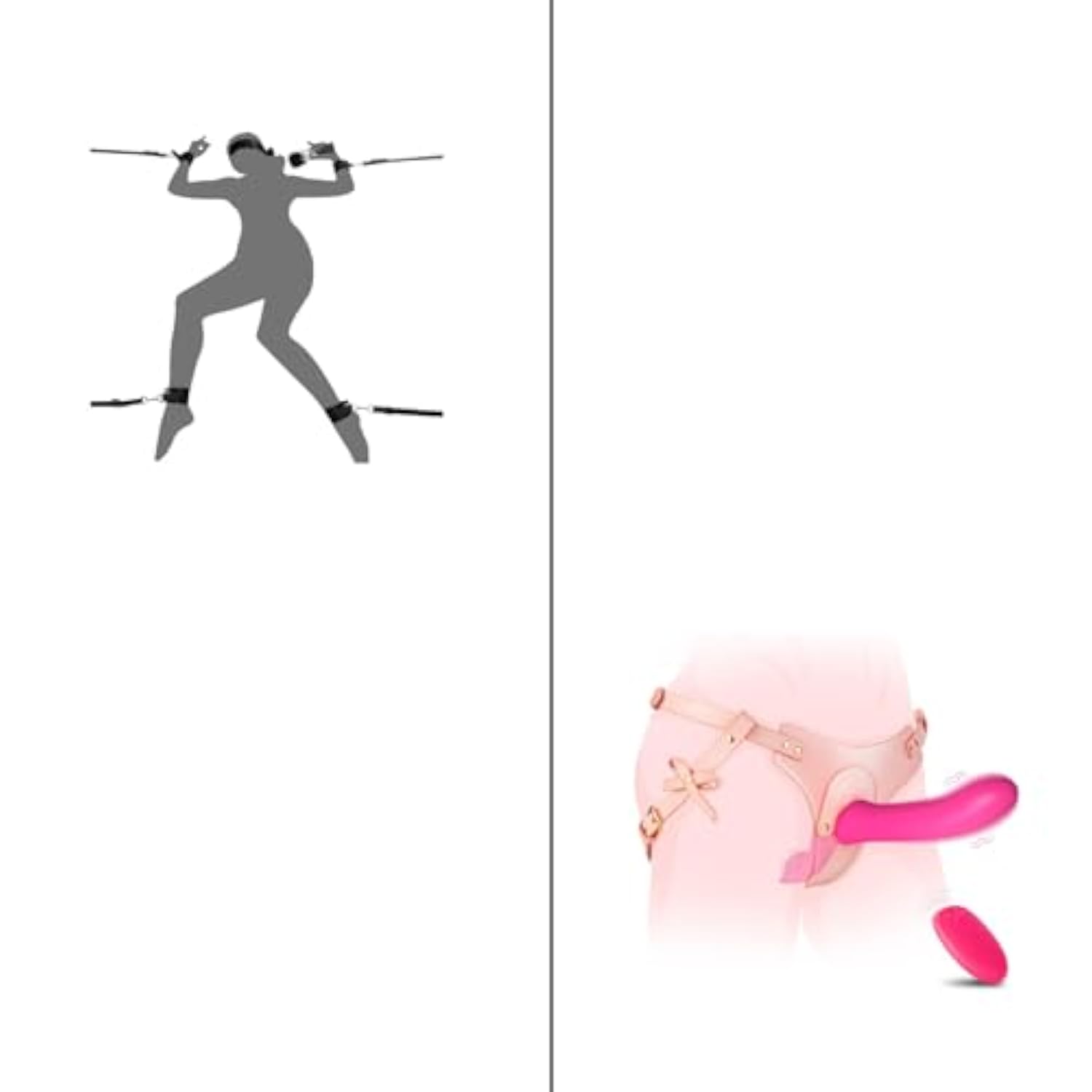 Bed Sex Bondage Restraint & Strap-On Vibrating Dildo Sex Toys