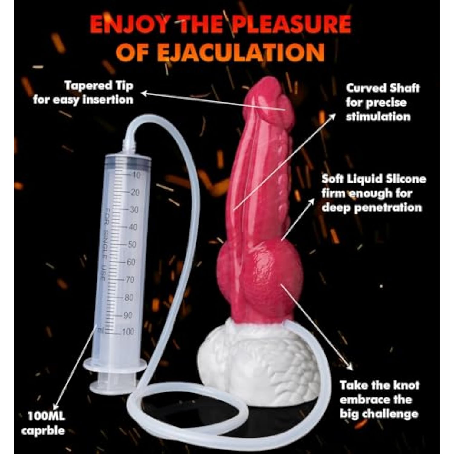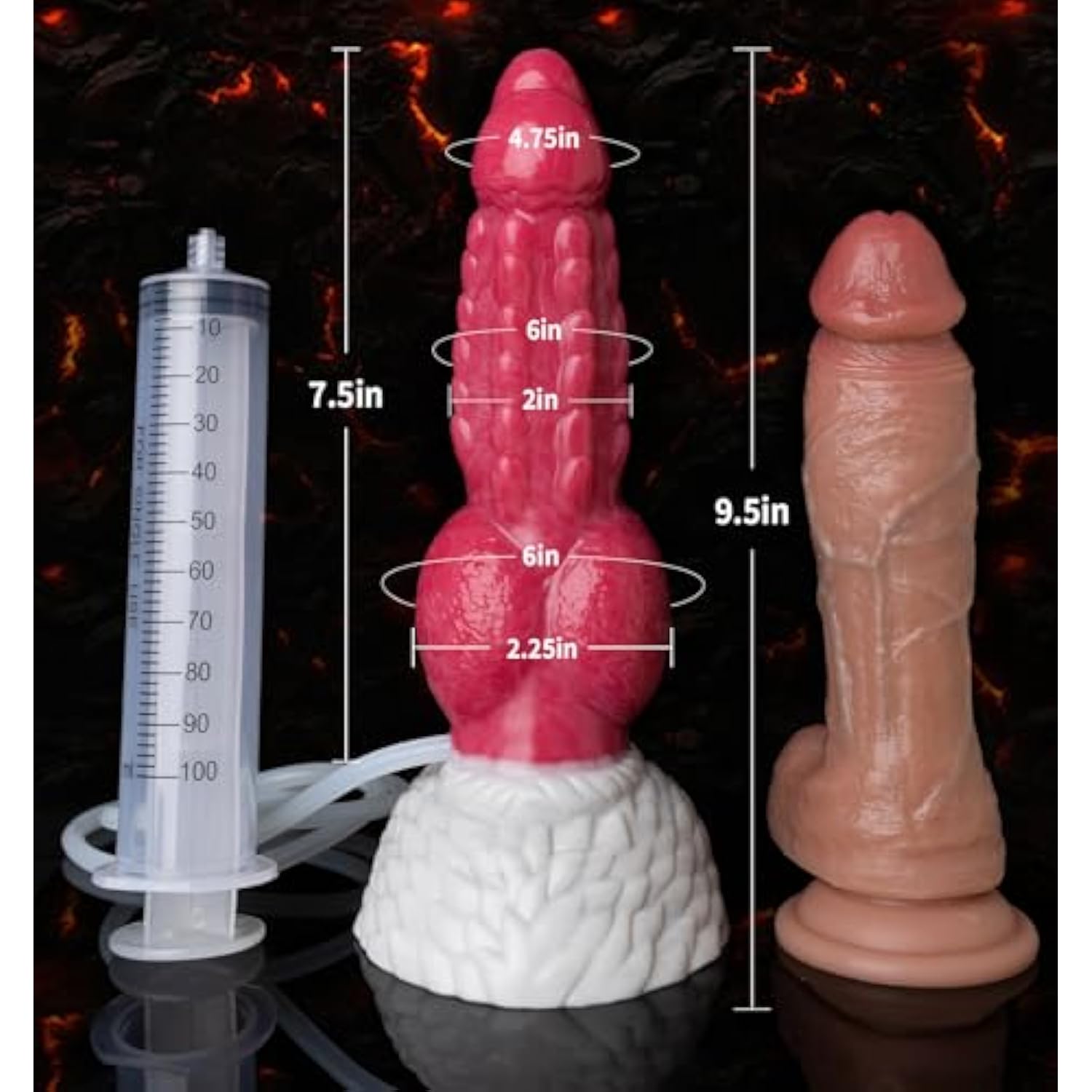 - Unique Knotted Squirting Dildo Yes, Please! This Ejaculating Monster Dildo Features A Tapered Glans For Easy Insertion, While The Ribbed Texture On The Back Offers Enhanced Vagin@L Or An@L Stimulation; Below, The Dog Knot Adds An Extra Challenge: After