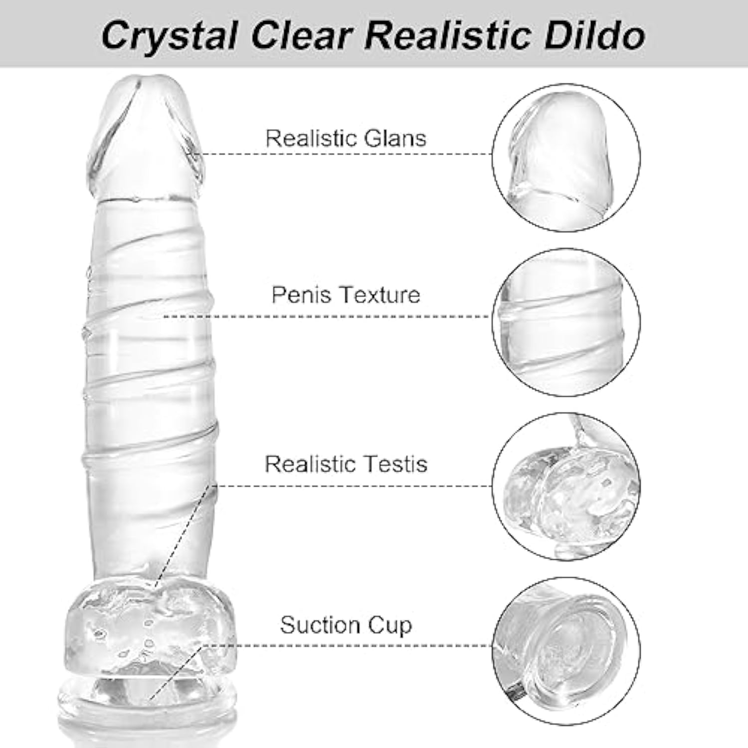 Big Realistic Dildo, 10.04 Inch Soft Jelly G-Spot Dildo With Suction Cup, Adult Sex Toy For Women Me Gay Anal Plug Sensory Toys (Clear M)