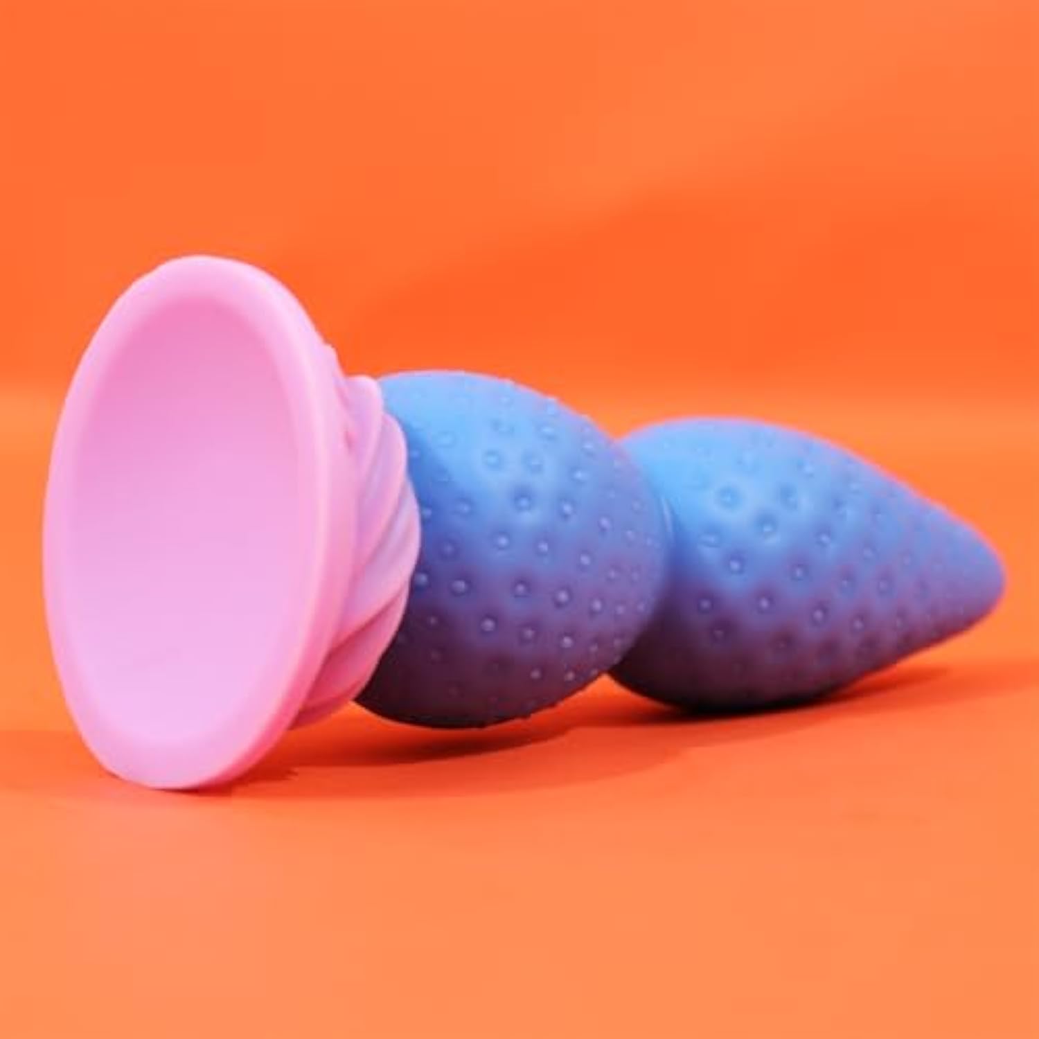 Big Strawberry Anal Plug Adult Sex Toy For Beginner, Fantasy Huge Silicone Butt Plug Trainer, G Spot Anal Adult Toy For Men Women Couples (Blue)