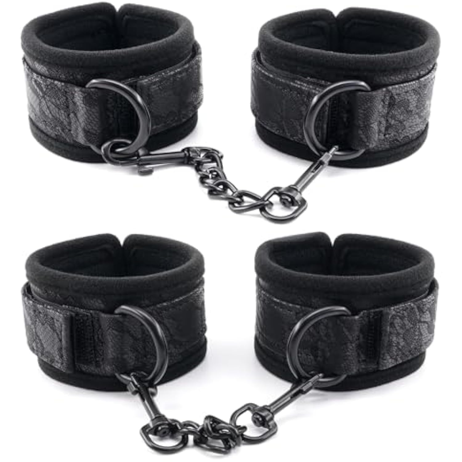 Black Leather Sex Wrist Cuffs And Ankle Cuffs For Sm Games, Women And Men'S Bondage Cuffs For Sex Games, Leather Sm Cuffs For Bondage Restraints, Bondage Handcuffs And Ankle Cuffs Set (Color-1)