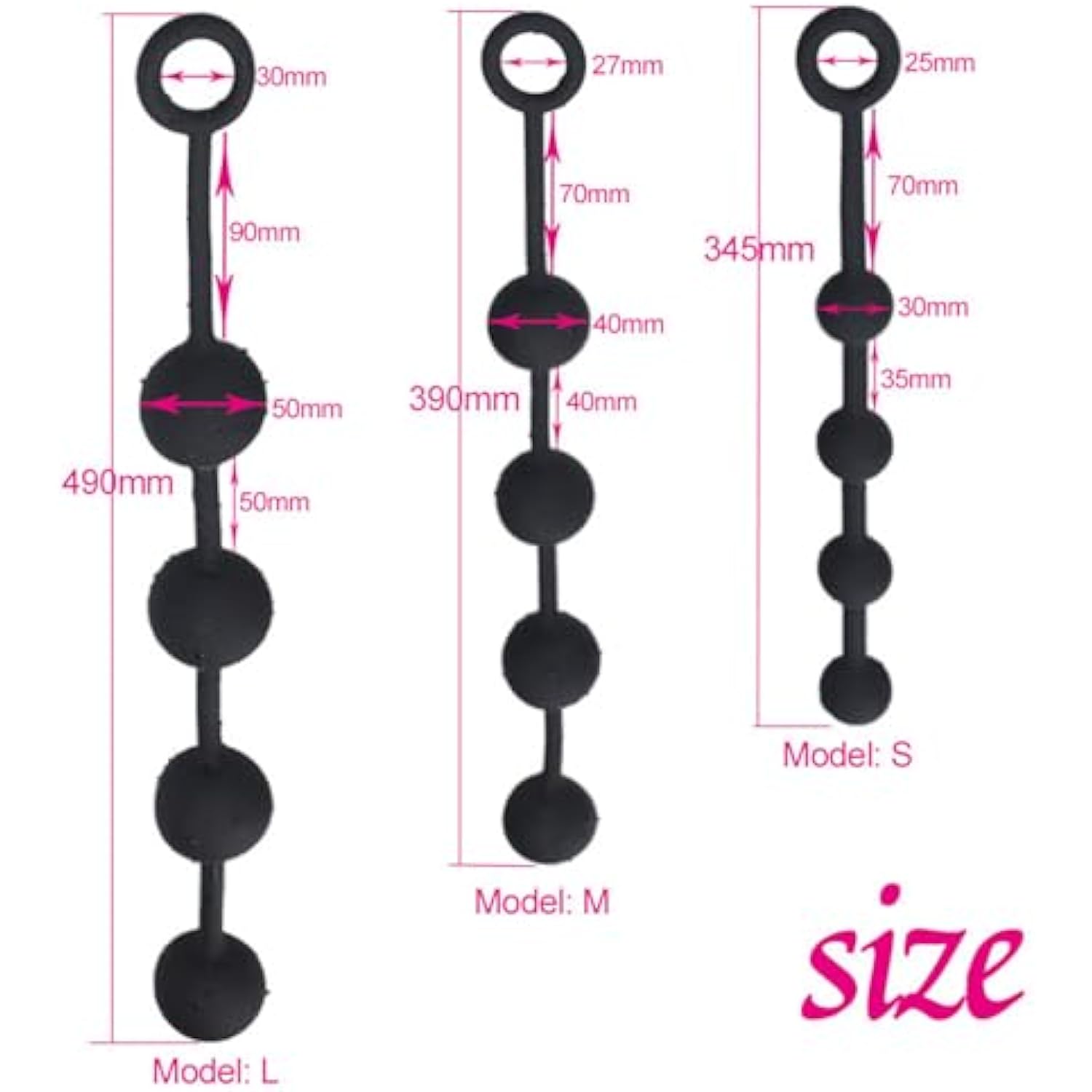 Black Pull Bead Anal Plug Extra-Long Large Size Backyard Pull Bead Anal Masturbator Toy Adult Sex Toy(M)