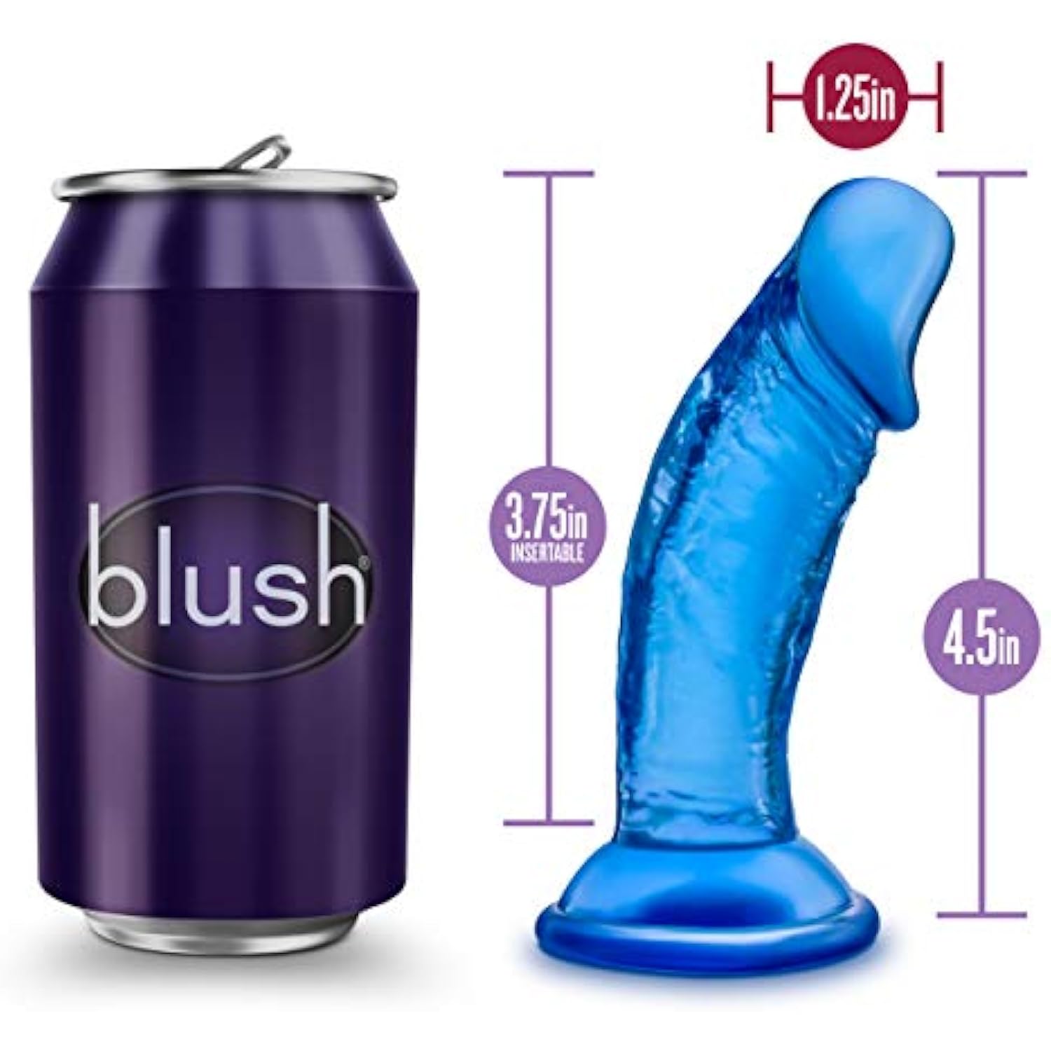 Blush Adult Sex Toys - B Yours, Sweet N Small Realistic 4.5 Inch Short Dildo - 1.25 Inch Wide Strap On Ready Suction Cup - Body Safe, Non Porous Soft - Pegging, Anal - Women Men Couples - Clear Blue