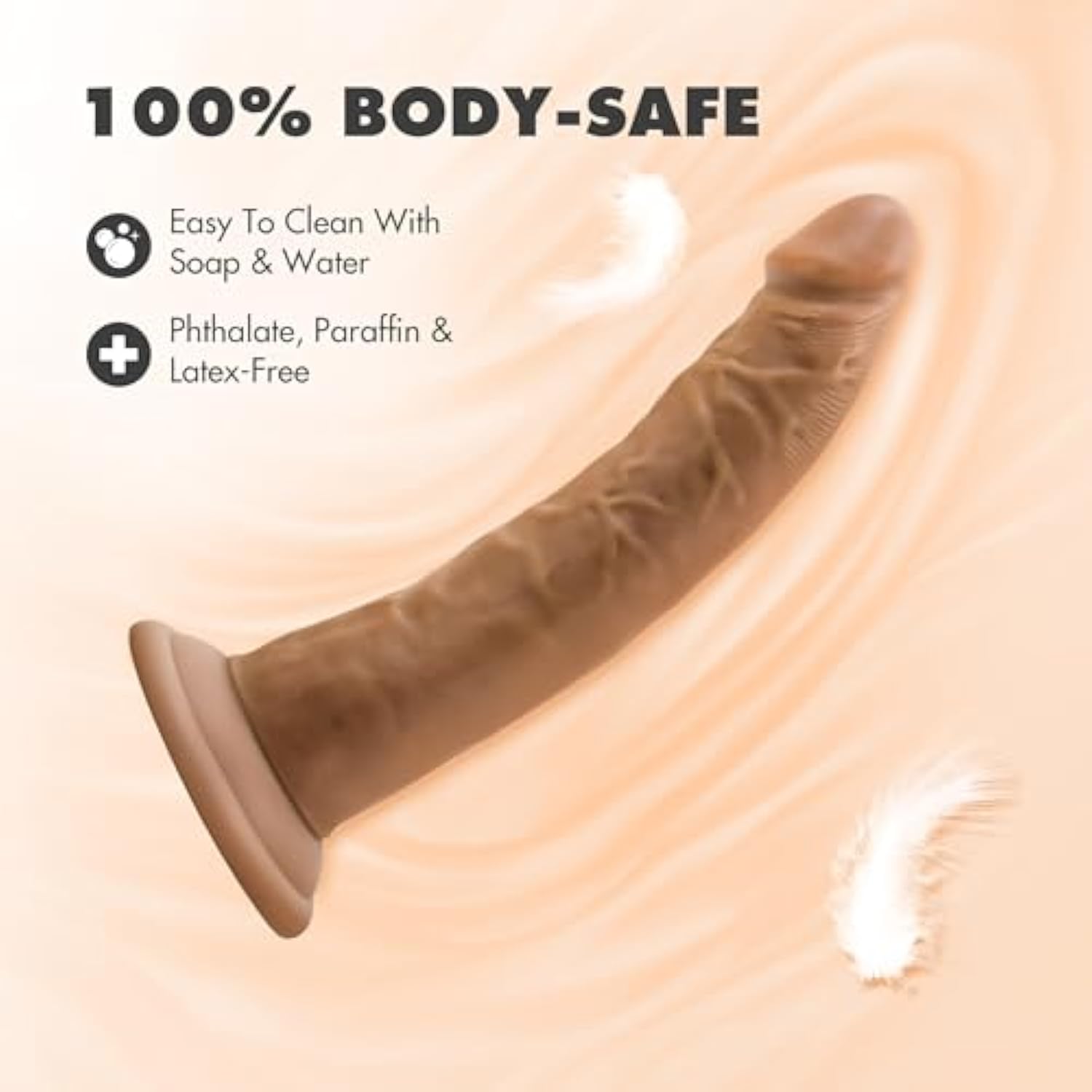 Blush Dr. Skin 7.5” Realistic Slim Shaft Dildo, 1.5” Wide Soft Lifelike Cock - Suction Cup, Strap-On Solo Or Partner, Body-Safe Anal & Pegging Play - Adult Sex Toy For Women, Men & Couples - (Mocha)