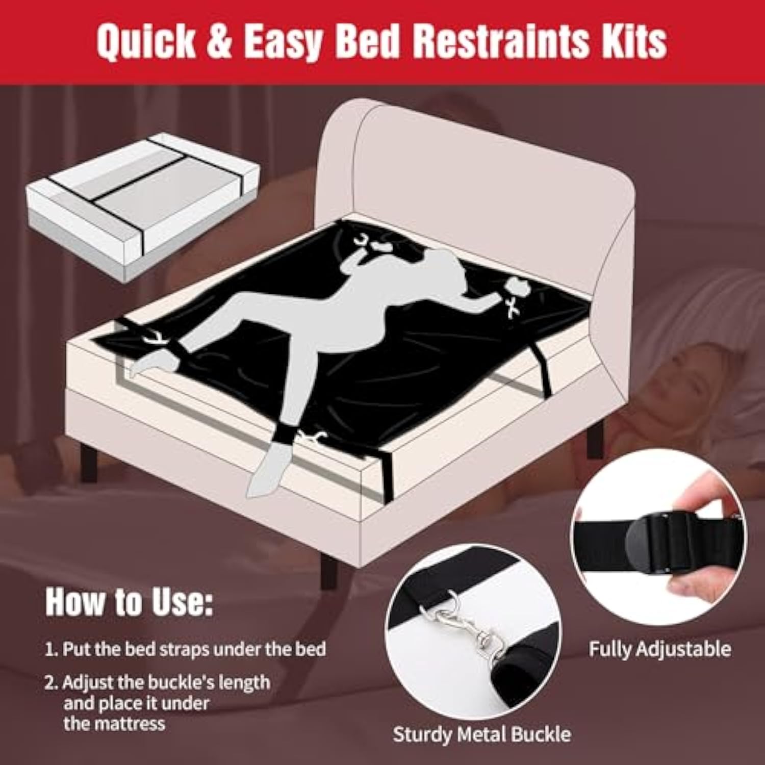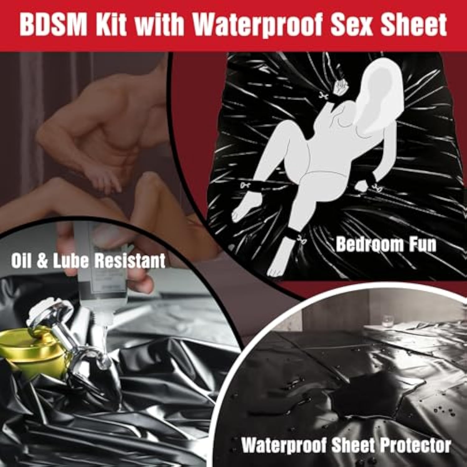 | A Bondage Gear Accessories Bedroom Set To Bring Fun: The 7-Piece Bdsm Kit Includes A Bed Sex Sheet, Blindfold, Ball Gag, Flogger, Hand Ankle Cuffs, And Adjustable Bed Sex Straps. Go Ahead! Strap Your Plaything Into The Padded Restraints At The Bed And Start A Bondage Game | | With Waterproof Sex Bed Sheets: The Size Is 47.2*86.6’’ Black Mattress Protector Features Waterproof Grease, Liquid, And Sweat. After Hot Sex Toys Bondage Game Fun, Without Worrying About Making A Mess In Unwanted Places. The Sheet Will Keep All Fluids On The Surface | | Adjustable Bed Bondage Set: The Bondage Bed Sex Straps Fit Most Beds And The Buckle Adjust Makes It Easy And Safe To Free Your Submissive Quickly. Once You Have Them In Your Ideal Position, Use Your Favorite Ticklers, Whips, Ball Gags, And Other Items To Explore | | Durable Soft Restraints Set Fit Play In The Bedroom: Put The Bed Sheets And Strap Them To The Bed With Adjustable Bondage Sex Straps, Blindfold Them, Gag Them, And Tickle Their Sensitive Erogenous Zones. With So Many Choices, It’S Bound To Be A Great Night | | Perfect For Beginners Bdsm Toys: All Of The Pieces Of Bondage In This Kit Are Great For Beginners. They All Are Easy To Use, Nothing Is Too Big Or Intimidating For New Partners And They’Re Small Enough To Stash Away When You Are Ready For Travel | |