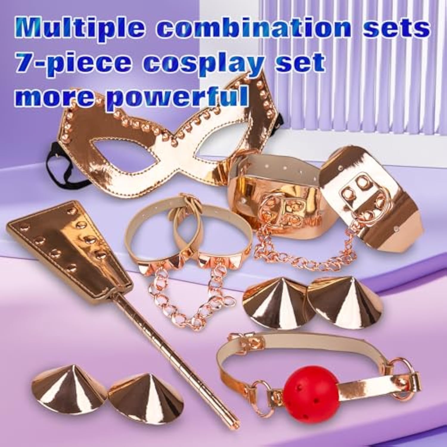 | Multiple Experiences: The Bondage Set Combines A Variety Of Props Such As Mouth Gags, Shackles, Handcuffs, Swatters, Nipple Pasties And Blindfolds To Provide A Variety Of Rich Experiences. Whether It'S Gentle Restraint Or Stimulating Stimulation, This Set Can Satisfy Every Preference. | | Safety And Comfort: The Suit Is Designed With The User'S Safety And Comfort In Mind, And Is Made Of High-Quality Materials To Ensure That It Will Not Cause Discomfort When Worn. The Mouth Gag And Breast Pads Are Made Of Soft Materials, And The Handcuffs And Leg Cuffs Are Ergonomi