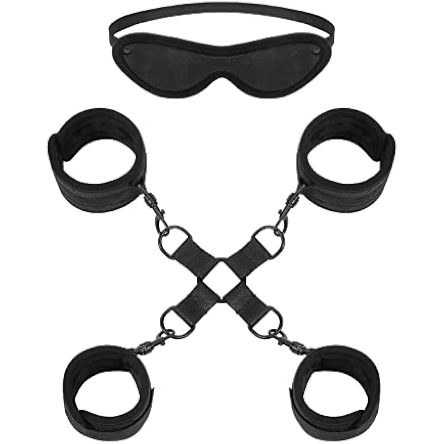 Bondage Restraint Hogtie Set, Handcuffs Ankle Cuffs Blindfold And Spanking Paddle For Adults Sex Play Toys