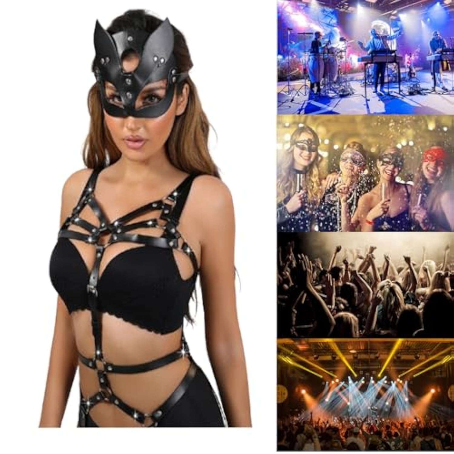 | ?? Edgy Stylish Statement Piece – Designed To Turn Heads, This Strappy Faux Leather Harness With A Cat Mask Creates A Bold And Seductive Look. Perfect For Clubwear, Festivals, Cosplay, Or Intimate Nights, This Daring Outfit Highlights Your Curves. | | ?? High-Quality Pu Leather Metal Accents – Made From Durable, Soft Pu Leather With Secure Metal Rivets, This Harness Set Ensures Both Style And Longevity. The Skin-Friendly Material Offers A Smooth Feel, While The Sturdy Construction Provides A Secure And Comfortable Fit. | | ?? Fully Adjustable For A Custom Fit – Featuring Adjustable Straps Across The Chest, Waist, And Shoulders, This Harness Accommodates Various Body Shapes. The Easy-To-Use Buckle System Allows For A Snug Yet Flexible Fit, Ensuring All-Day Or All-Night Comfort. | | ?? Versatile Use For Different Occasions – Whether You'Re Dressing Up For A Music Festival, Adding An Edgy Touch To Your Lingerie, Or Experimenting With Cosplay, This Harness And Mask Combo Is Perfect For Making A Bold Fashion Statement. Ideal For Themed Parties, Performances, And Photoshoots. | | ?? Sexy Cat Mask For A Mysterious Touch – The Included Black Cat Mask Adds A Playful And Seductive Vibe To Your Outfit. Designed With Cut-Out Details And Sturdy Hardware, It Completes The Alluring Look And Enhances Roleplay Experiences With Confidence And Style. | |