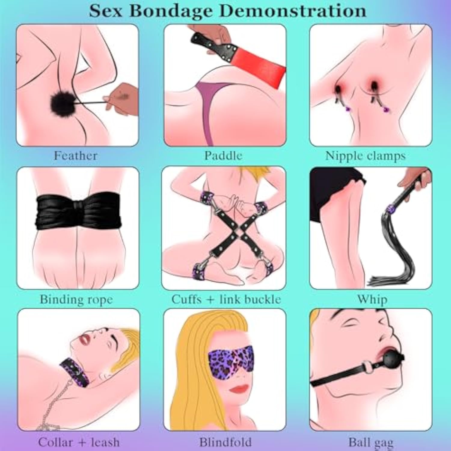 Bondage Set Bdsm Restraints Kit For Couples Sex Games,16Pcs Adult Sex Toys Kit With Rope Handcuffs Collars Ankles & Wrist Bar For Sexual Pleasure,Sex Things For Couples Kinky