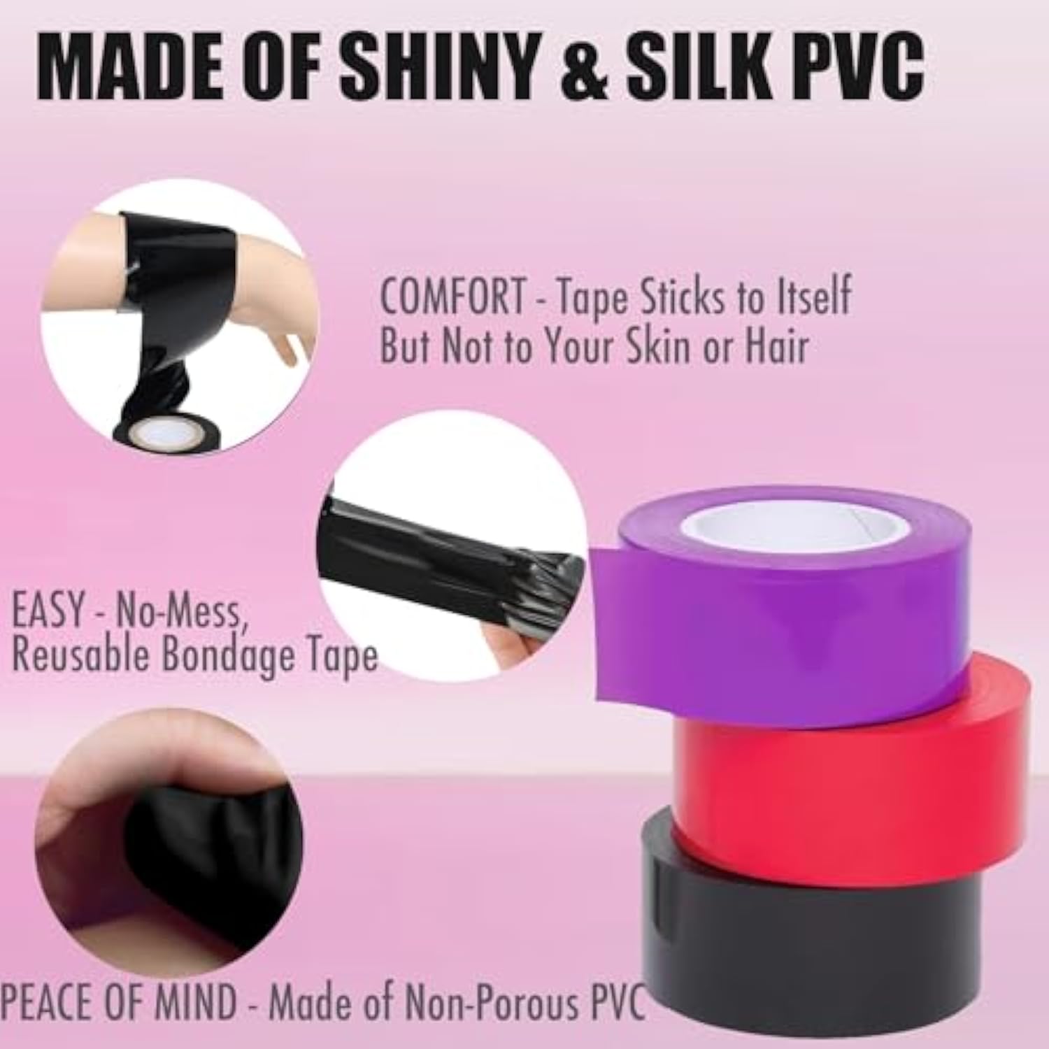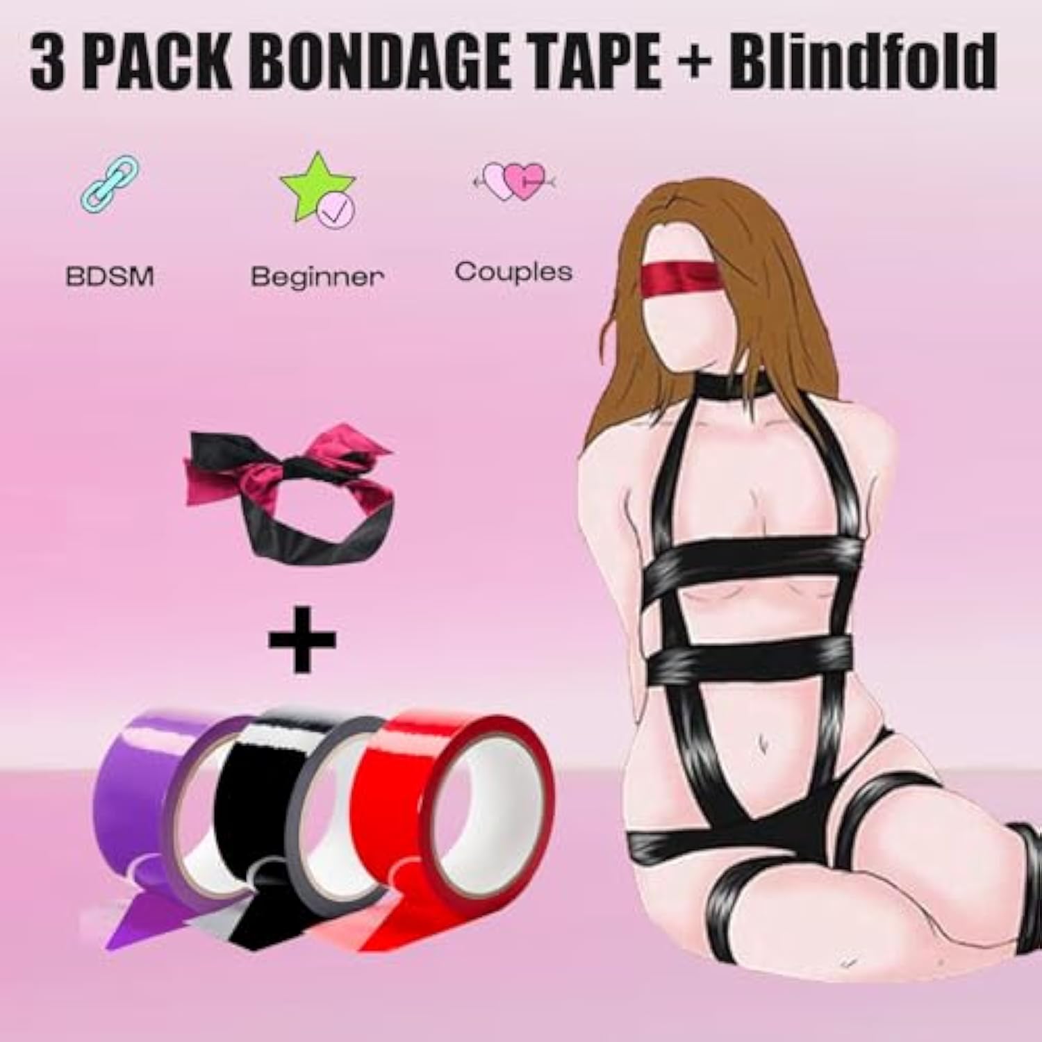 - Bondage Tape Set: Get Creative With This Sensual, Reusable Bondage Tape That Sticks To Itself But Not To Skin Or Hair. This Lightweight Tape Is An Ideal Way To Create Blindfolds, Gags, Or To Bind Your Lover To Any Surface Without The Mess Of Adhesive Ta