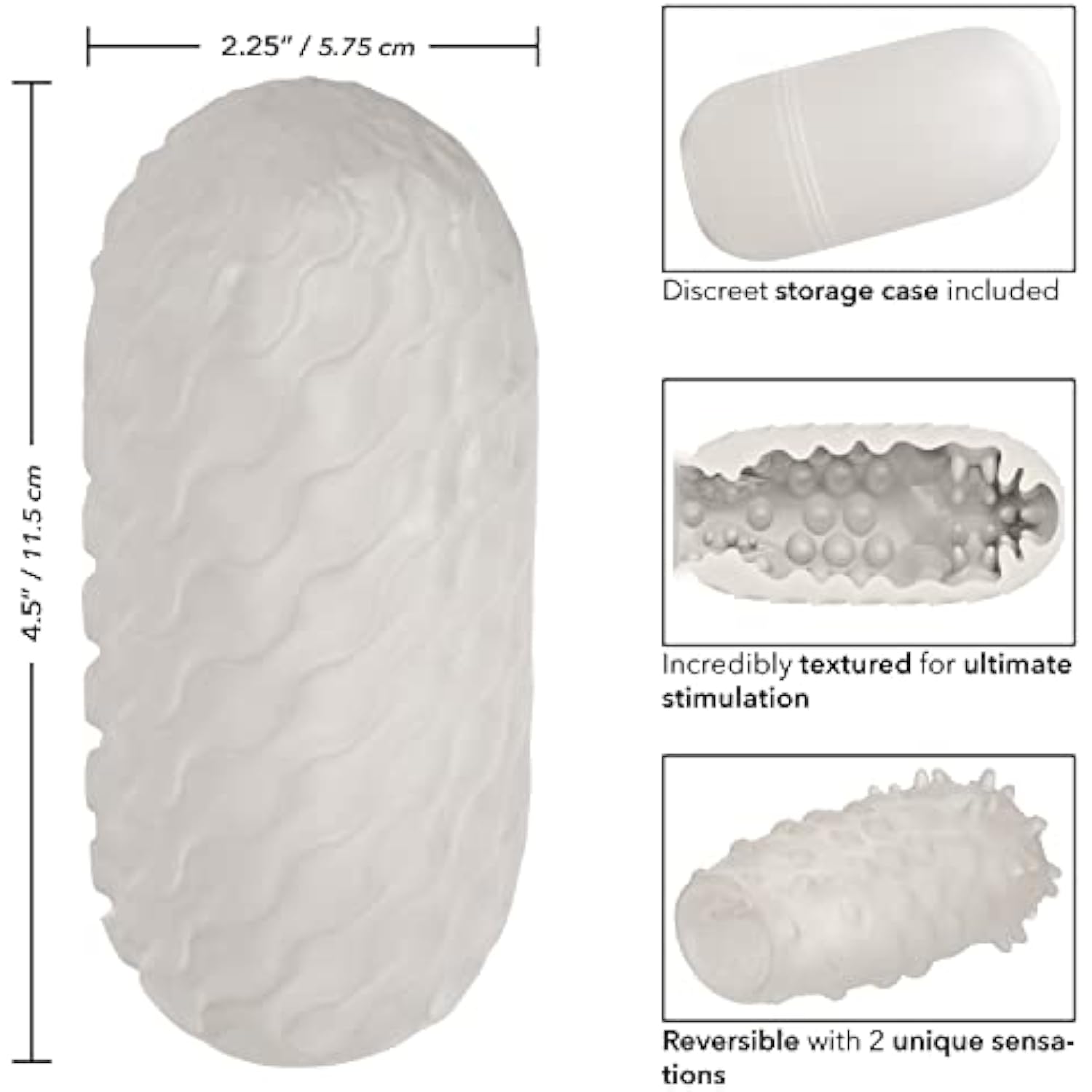 Boundless Reversible Nubby Stroker – Textured Male Pleasure Sleeve With Case– Sex Toys For Men – Clear