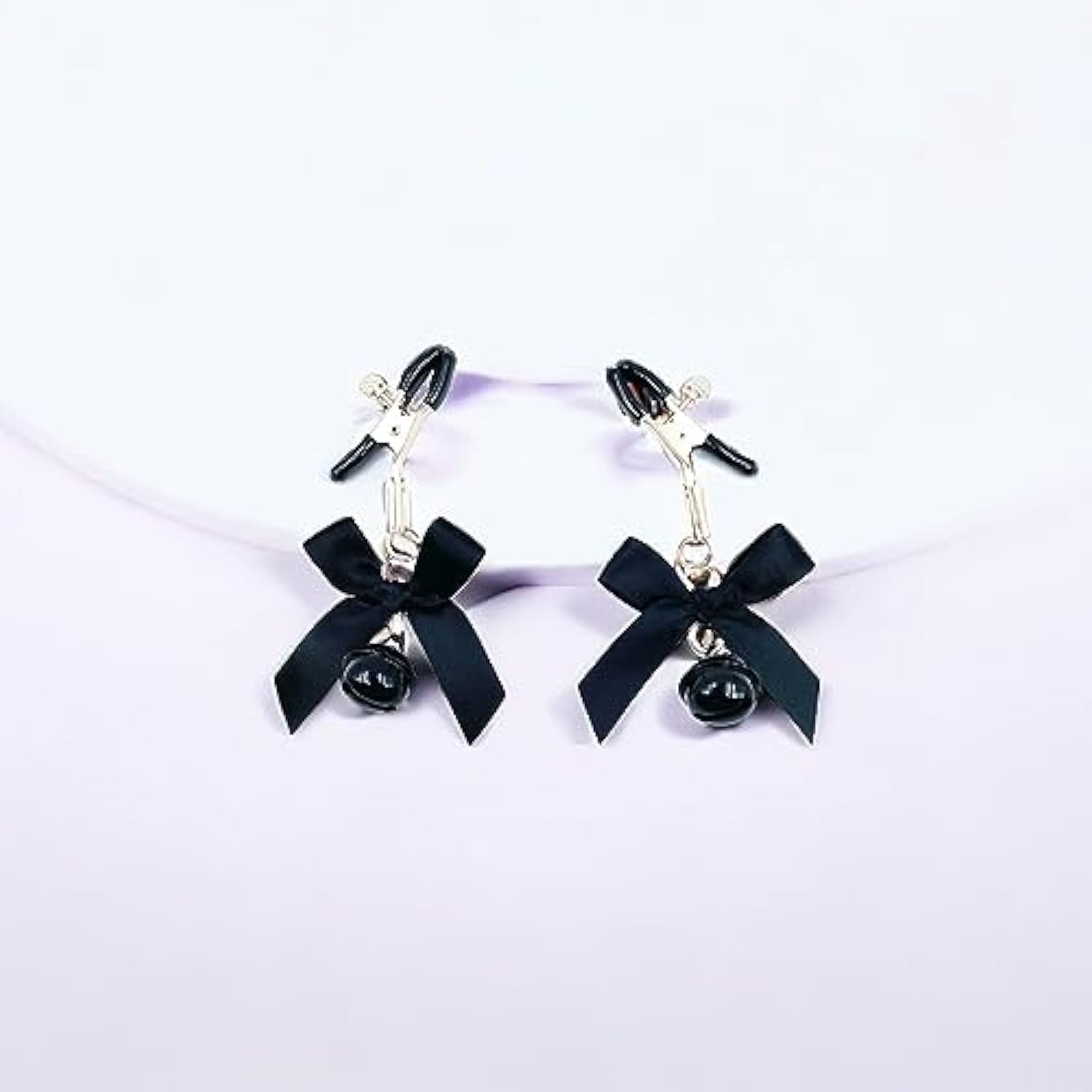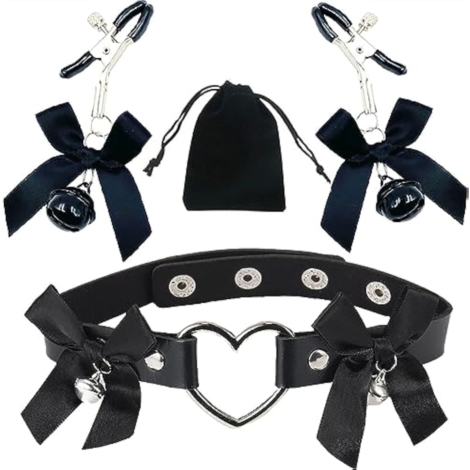 Bow Nipple Clamps Bells Sexual Pleasure Non Piercing Adjustable Chain Nipple Clip On Jewelry Breast Clamps Leather Bow Heart Choker Necklace With Velvet Bag