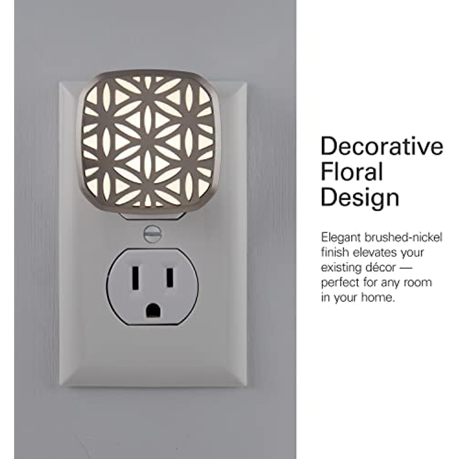 Brushed Nickel Flower Design Night Light With Plug-in, Dusk to Dawn Sensor