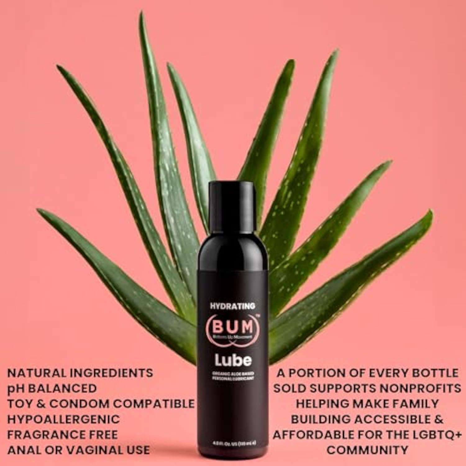(Bum) Water Based Lube - Organic Aloe Personal Lubricant And Vaginal Moisturizer, Uber Hydrating, Ph Balanced, Fragrance Free, Hypoallergenic, Condom Compatible, For Men, Women, Couples, 4Oz