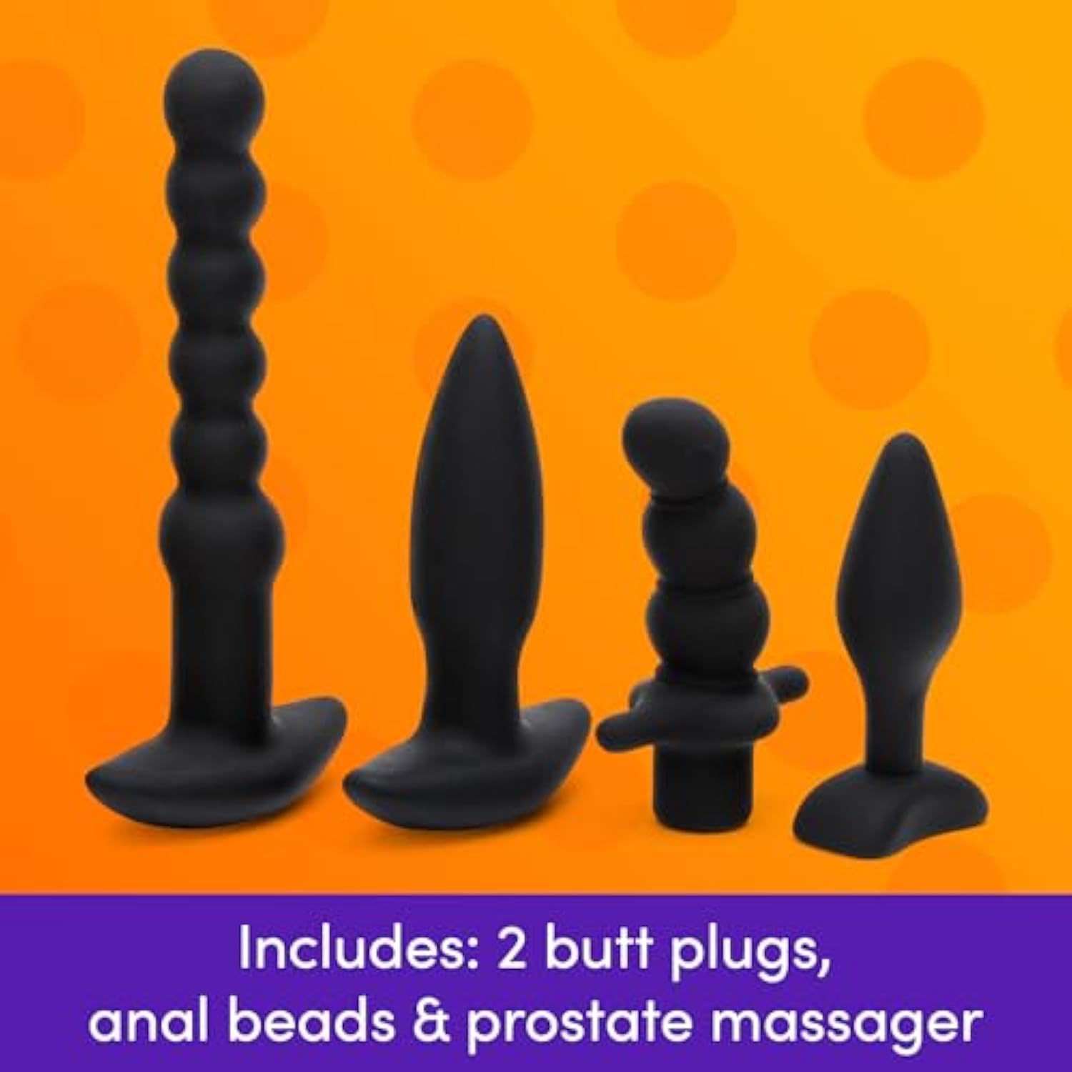 Bumper Booty Anal Toys Kit - 2 Butt Plugs, Anal Beads, Prostate Massager & Douche - Removable Bullet Vibrator Included - Silicone 6 Piece Adult Sex Toy Kit For Couples - Black