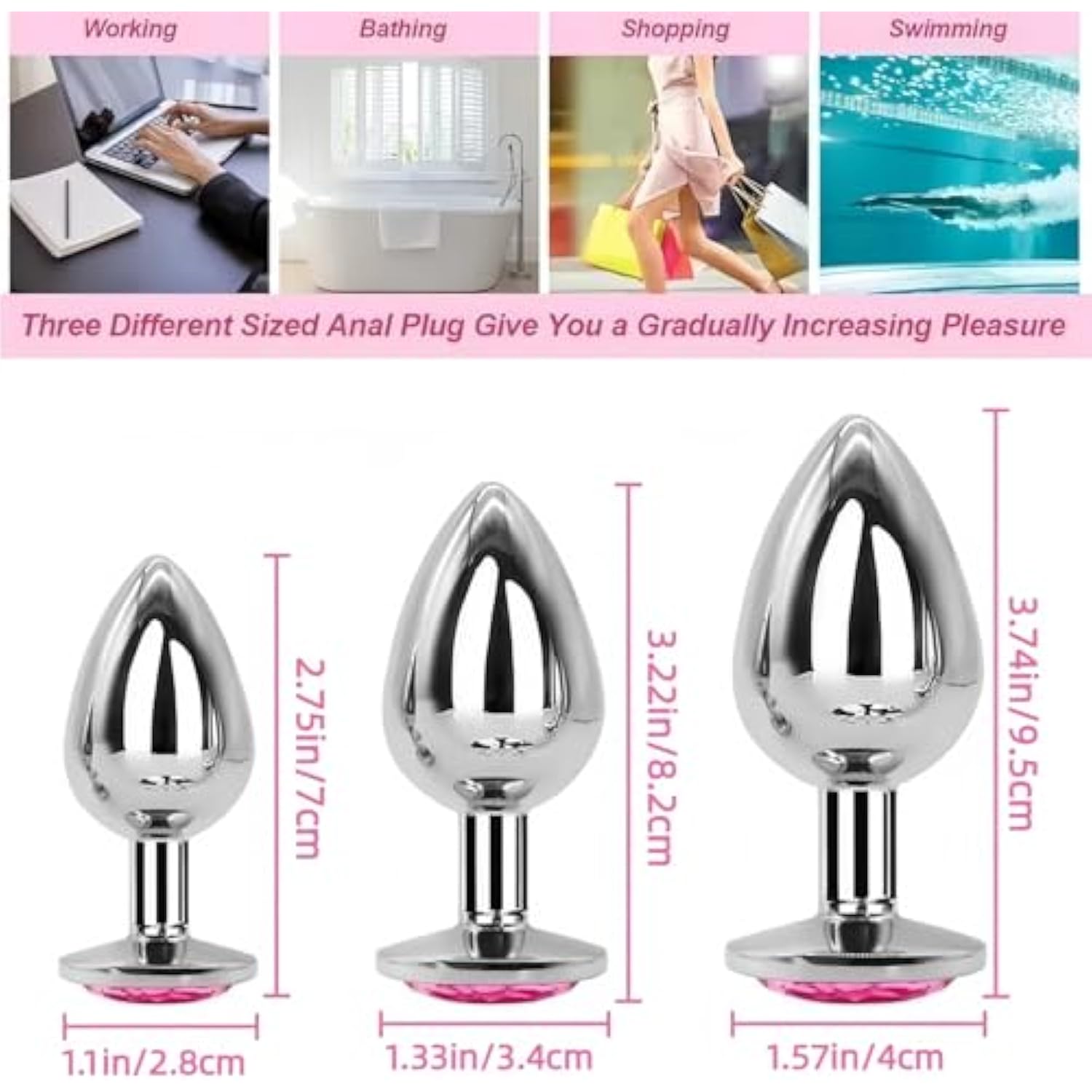 Butt Anal Plug Trainer Kits, 3Pcs Metal Butt Anal Plugs Massage Anal Trainer Toys For Couple Games, 3 Sizes With Pink Crystal Jewels