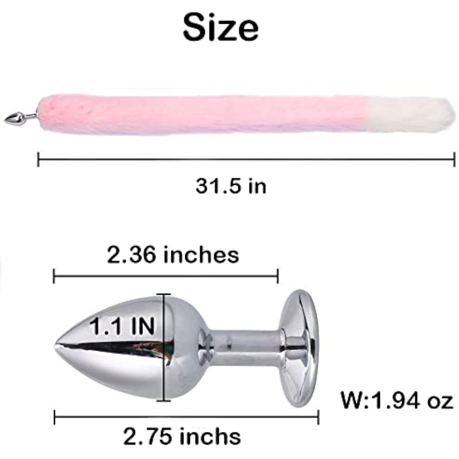 Butt Plug Fox Tail Cosplay Anal Plug Anal Butt Plug Adult Sex Toys For Beginner Women Men Couple (31" Pink-White-1)