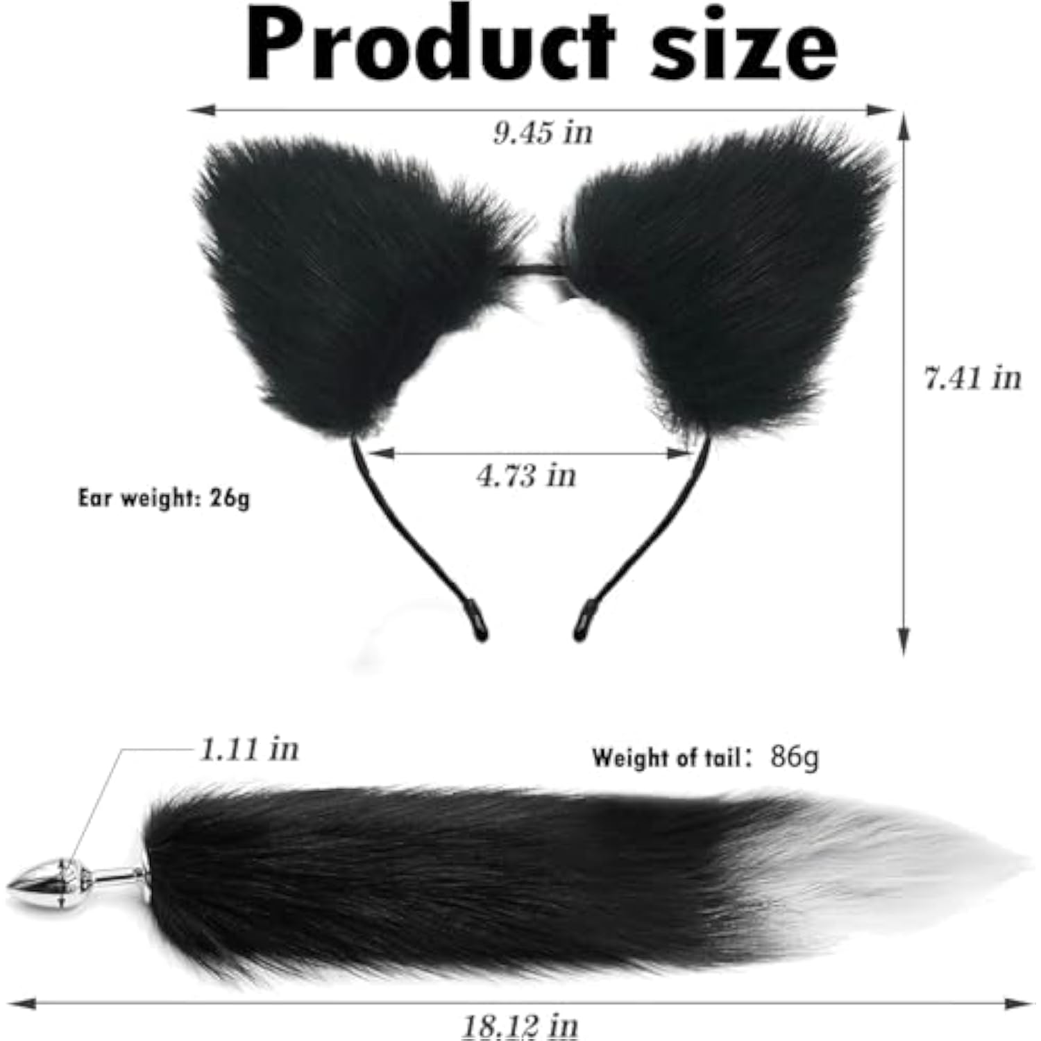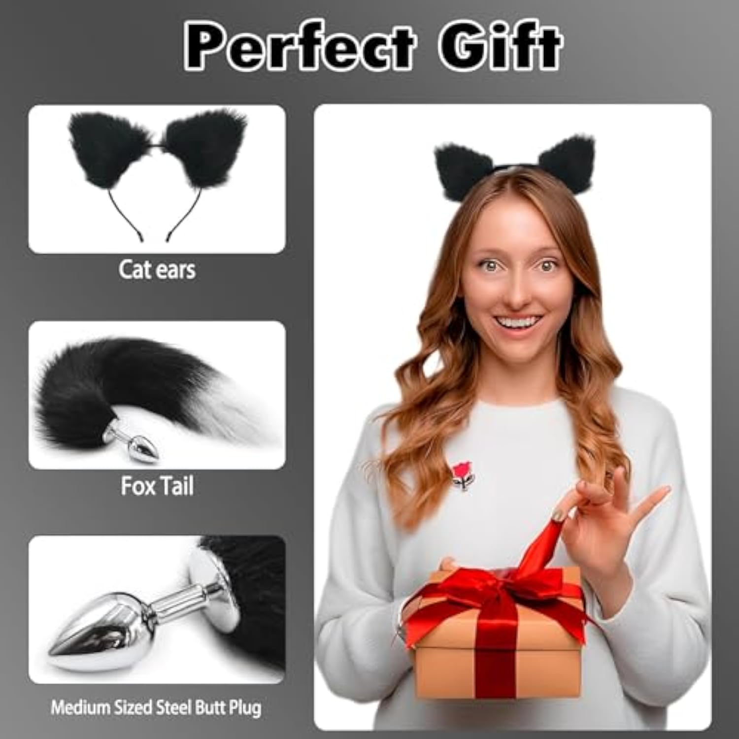 Butt Plug Fox Tail Ears Headbands Set, Detachable Fox Tail Fur Anal Plug Sexy Adult Toy Fashion Butt Stainless Steel Cosplay Sex Flirt Toys
