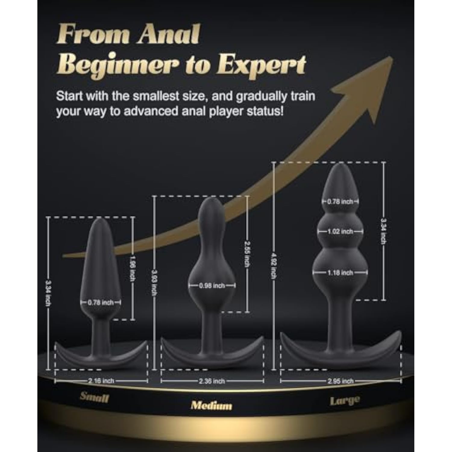- 3Pcs Butt Piug Set Anal Piug Training Kit: We Combine 3 Most Popular Design Shapes Anal Plugs Training Set. Whether You Are A Beginner Or An Advanced User, You Can Find The Size That Will Makes You Excited. The Small Anal Plug Has Smooth Shape And Easil