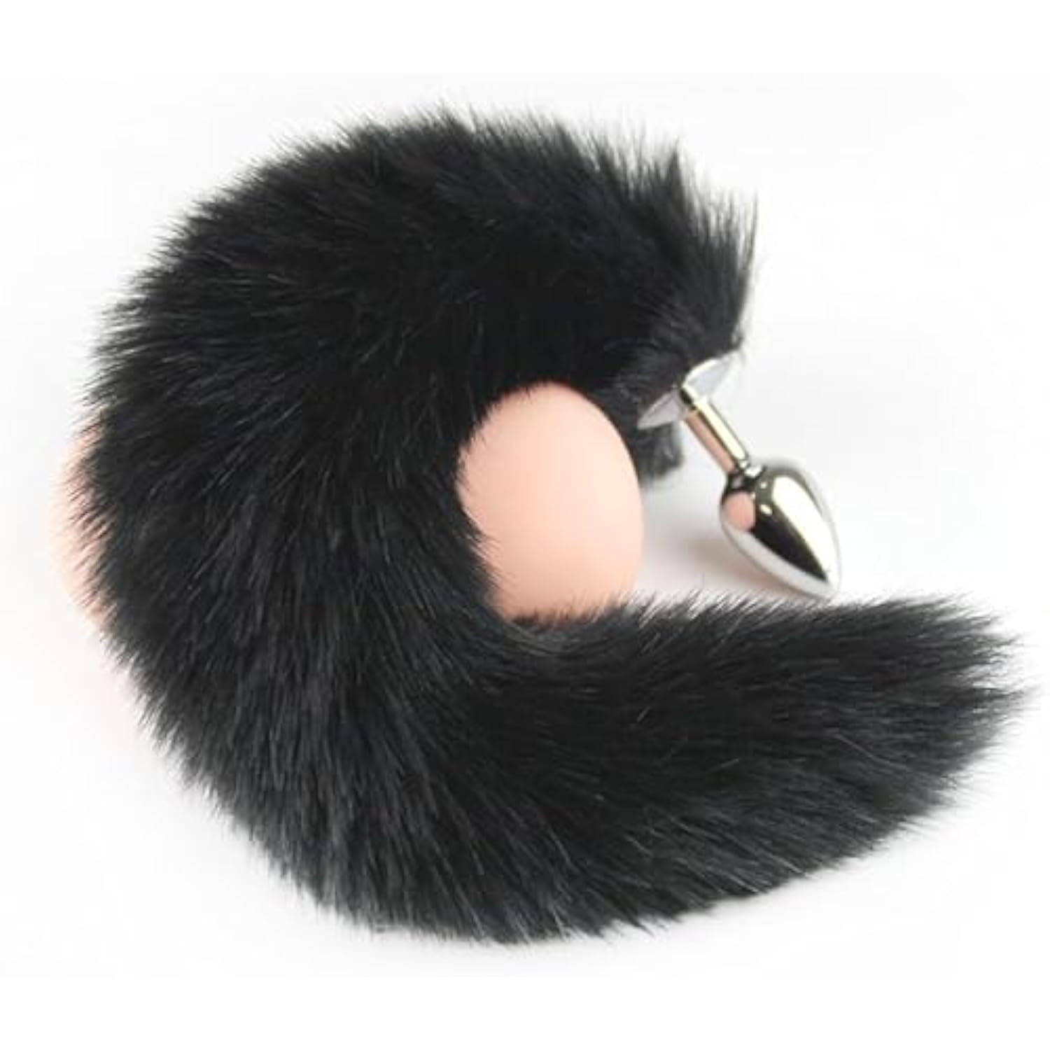 Butt Plug Tail Anal Sex Toys, Anal Butt Plug Artificial Fiber Fur Tail Toys Stainless Steel But Plug Butt Toys Sex Toys For Women Cosplay Adult Sex Toys For Women (Black)