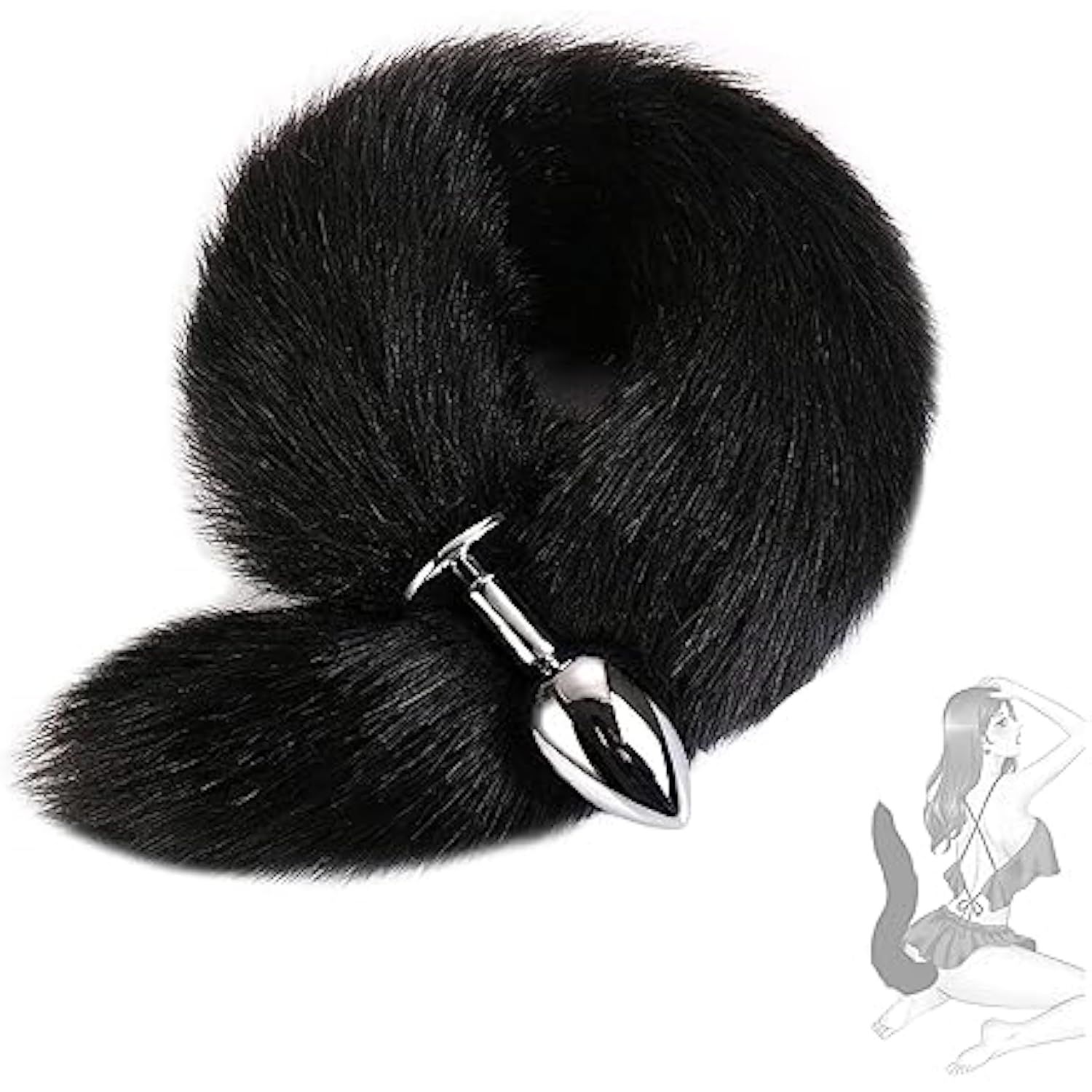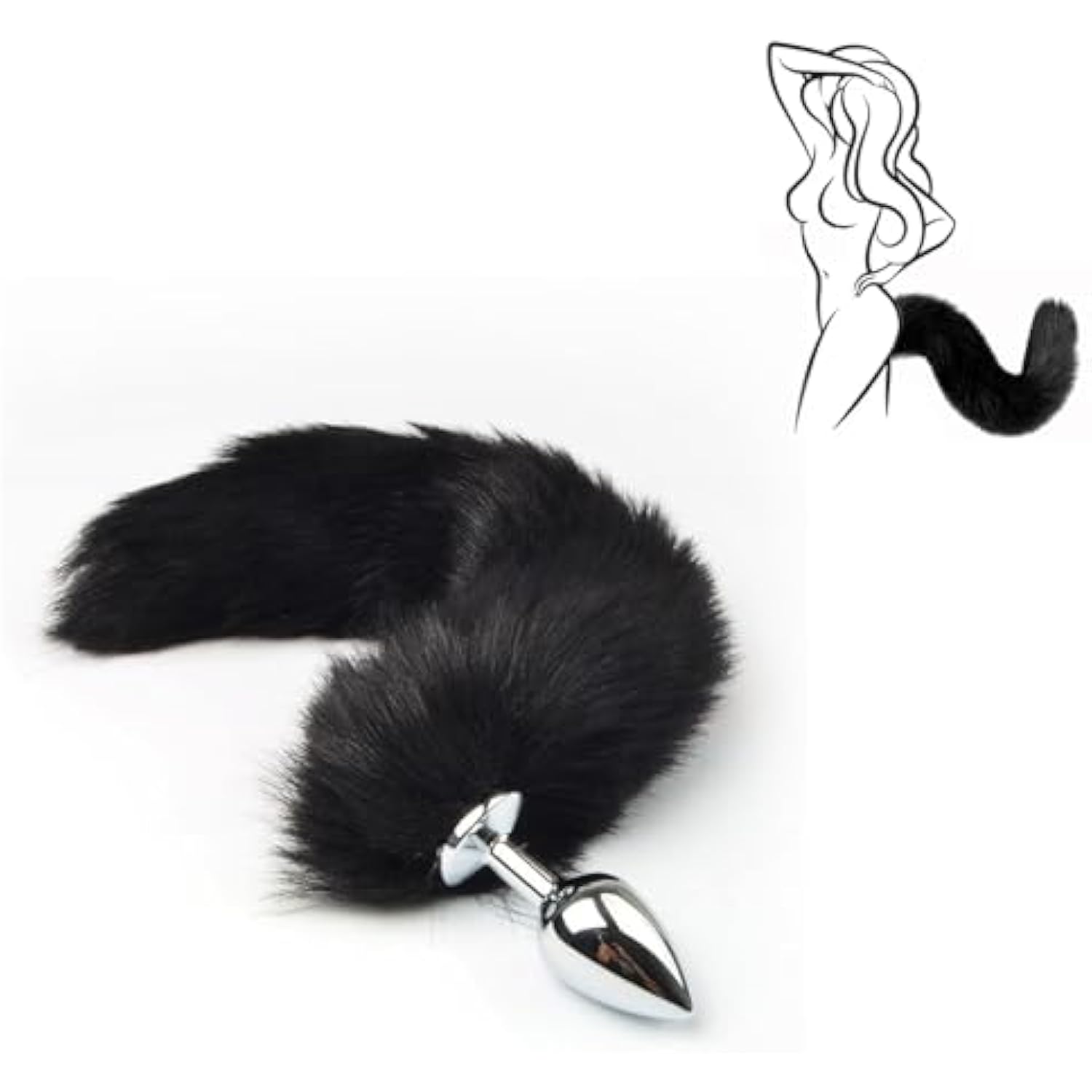 Butt Plug With Fox Tail, Women Stainless Steel Anal Plug With Plush Fox Tail, Anal Toys Buttplug Training, Fox Tail Plug Adult, Sm Sex Toys For Couples Flirt Play Fetish Cosplay (Black)