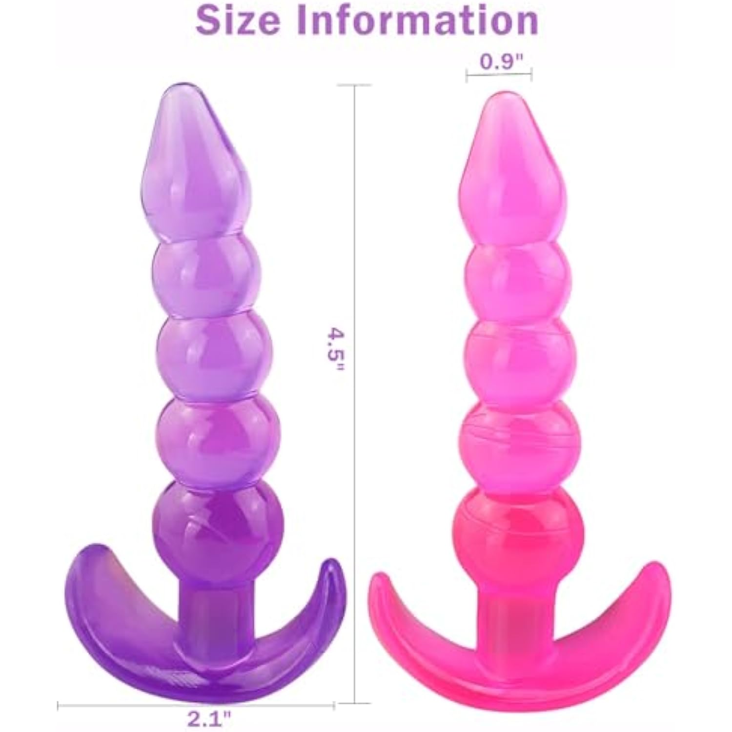 Butt Plugs, 2 Pcs Anal Training Kit Soft Jelly Anal Plug G-Spot Prostate Massager Anus Trainer For Adult Masturbation Sm Beginner Gay Couple Sex Game Play For Men Women Couples(Purple + Pink)