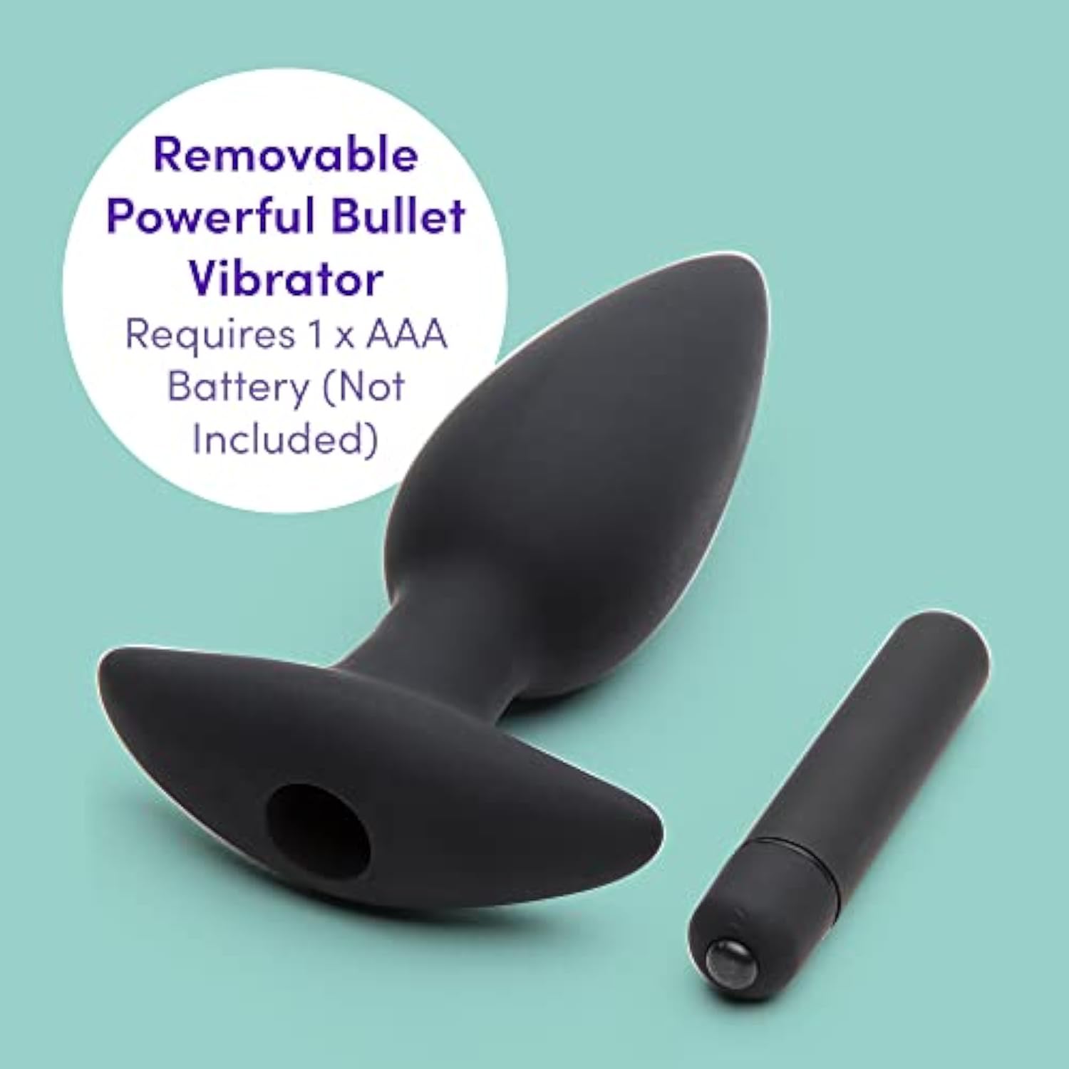 Butt Tingler Vibrating Butt Plug - 4.5 Inch Silicone Anal Plug - Beginner Friendly With Flared Base - 7 Vibration Modes & 3 Speeds - Waterproof - Black